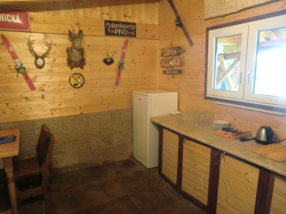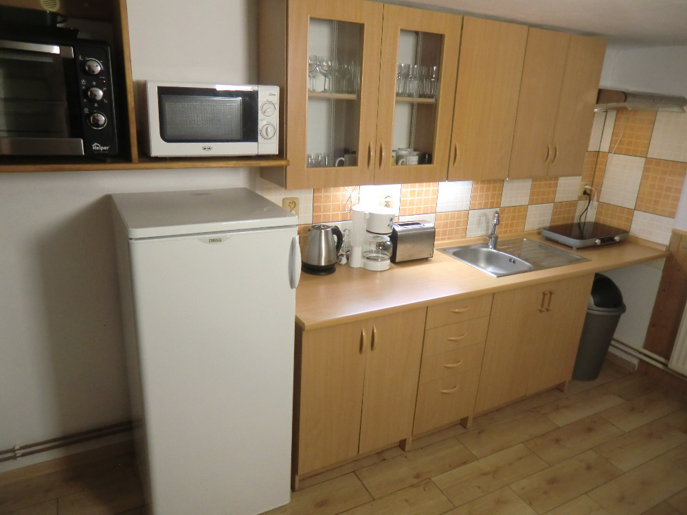 - kuchyně (el. 2plotýnkový vařič, lednička, mikrovlnná trouba, rychlovarná konvice, kávovar, topinkovač)