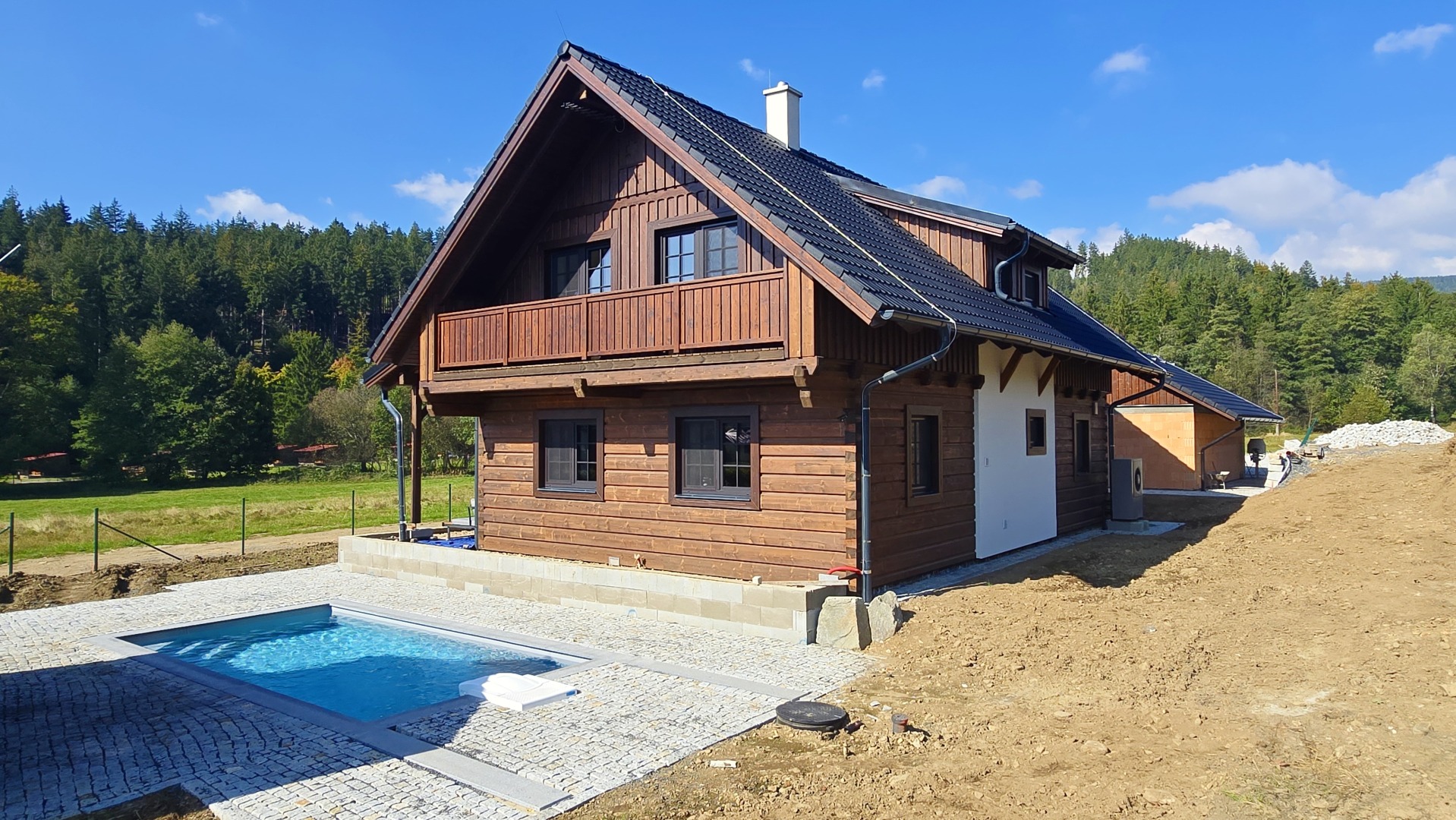 Exkluzivní, velmi nadstandardně vybavená chalupa s venkovním zapuštěným, zastřešeným, vyhřívaným bazénem se slanou vodou, masážním bazénem SPA, kombinovanou saunou a letní kuchyní, pod Pustevnami, 10 km od valašského muzea v přírodě v Rožnově pod Radhoštěm a 15 km od SKI areálu Bílá v Beskydech.