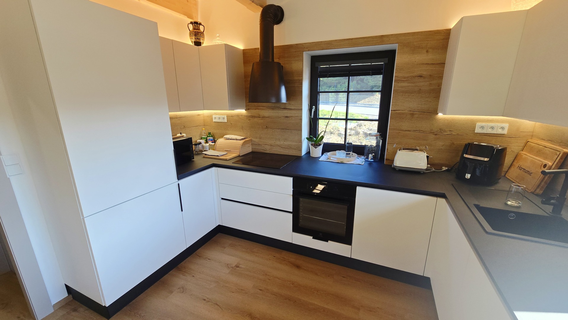 - kuchyně (sklokeramická deska, horkovzdušná trouba, lednička s mrazákem, mikrovlnná trouba, myčka, rychlovarná konvice, kávovar na kapsle, set na přípravu čaje, horkovzdušná fritéza, topinkovač, toustovač, vaflovač)