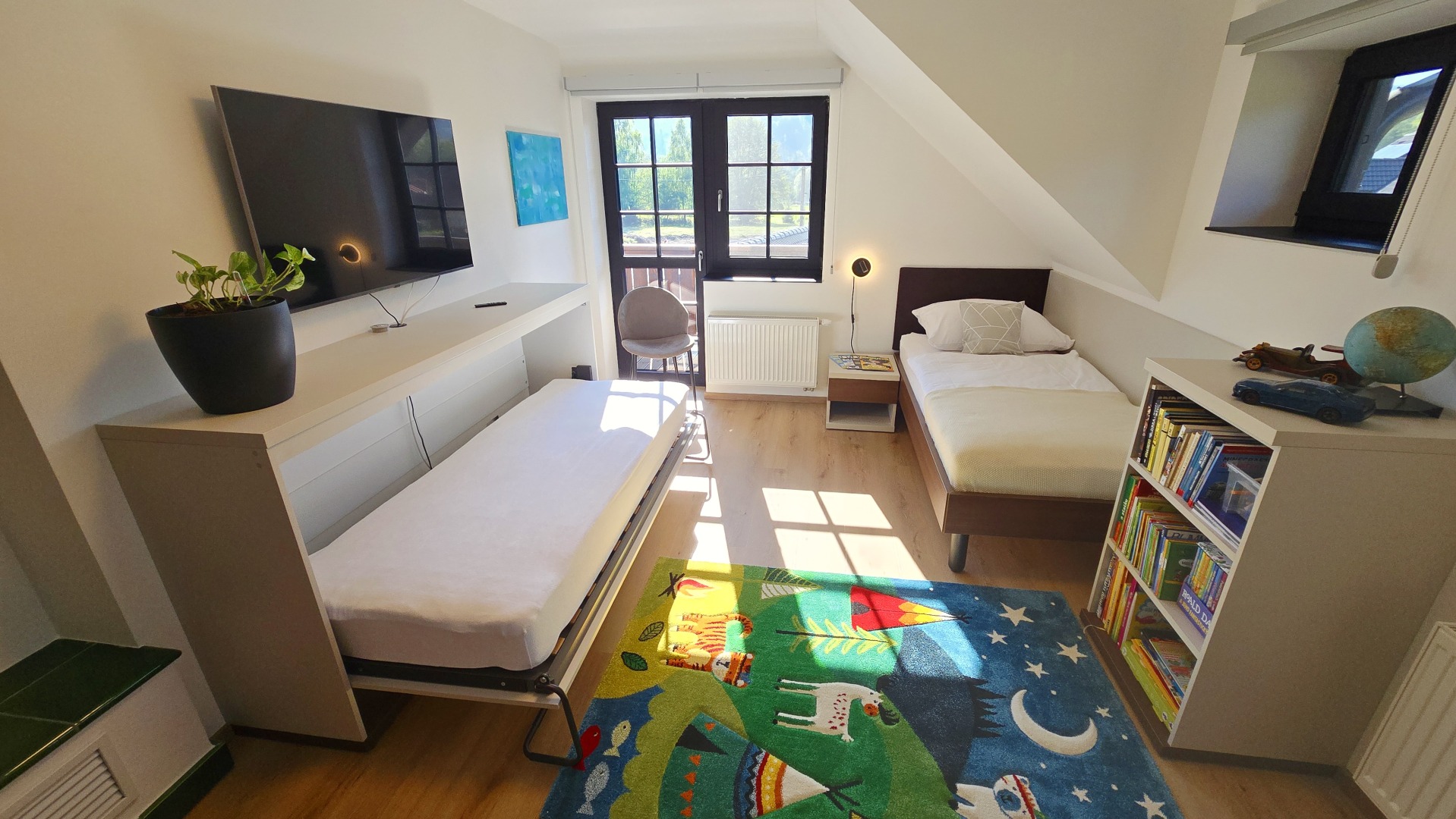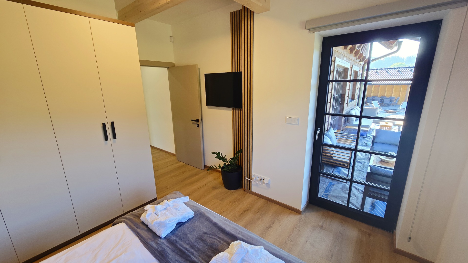 - 3 ložnice (2/2, 1/3) - každá s TV, 2 ložnice v patře mají přímý vstup na terasu s posezením