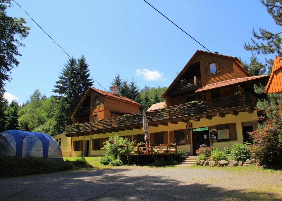 - dětský koutek (pískoviště, tabule na kreslení, prolézačky, houpačka, skluzavka, basketbalový koš, stolní tenis, velká trampolína)