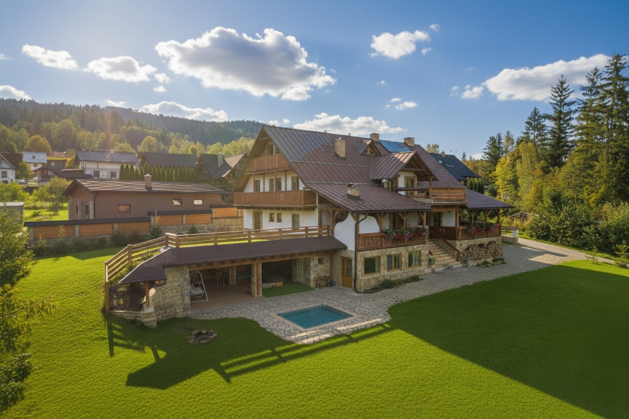 Velká, velmi atraktivní a dobře vybavená chalupa s bazénem a saunou, 6 km od lyžařského areálu Snowparadise a letního zábavního centra Sunparadise a 12 km od Čadce v CHKO Kysuce.