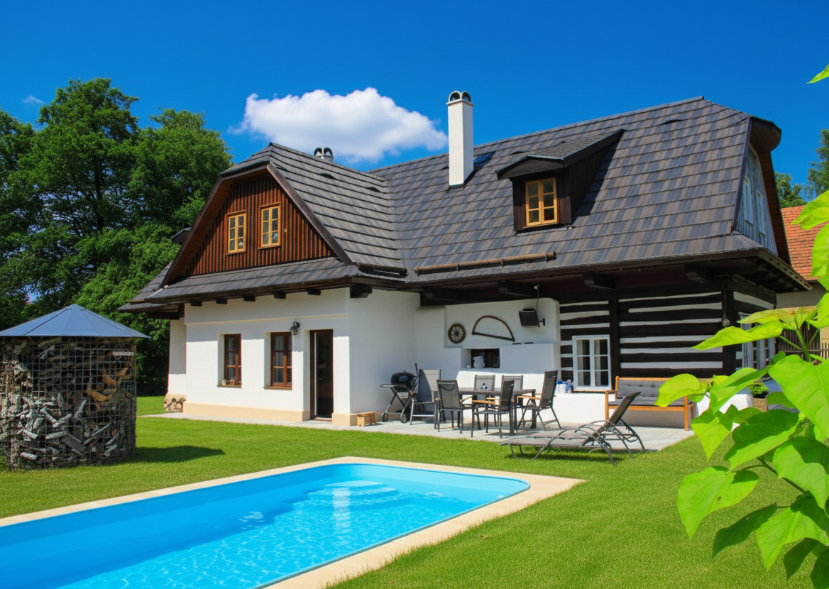 Mimořádně atraktivní stylová chalupa s venkovním zapuštěným, osvětleným bazénem a samostatnou wellness, 1 km od lyžařského vleku, 3 km od Řetové, 5 km od České Třebové a 10 km od Litomyšle (UNESCO) v podhůří Orlických hor.