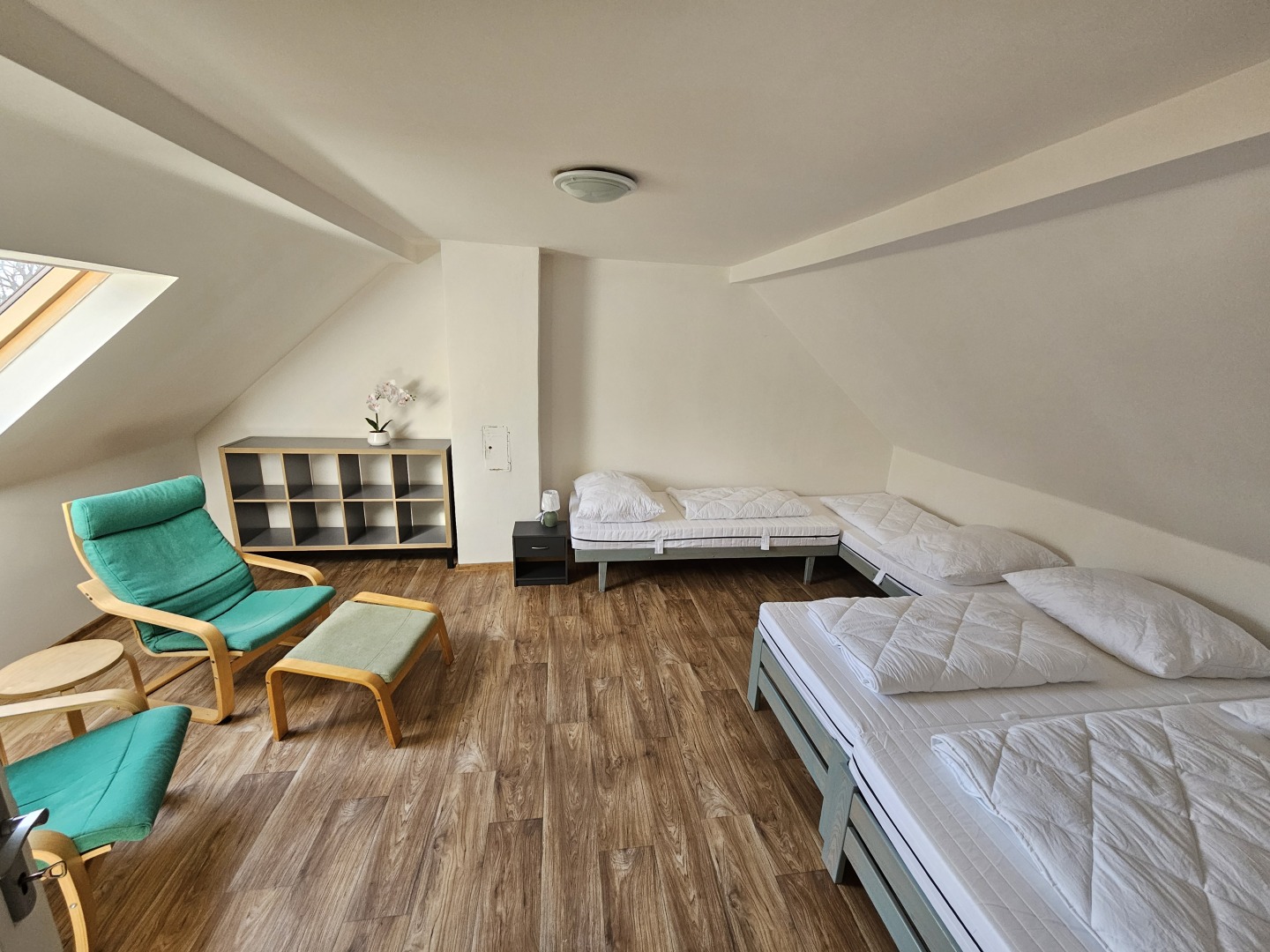 - obytná ložnice s TV a 2 lůžky (rozkládací pohovka)