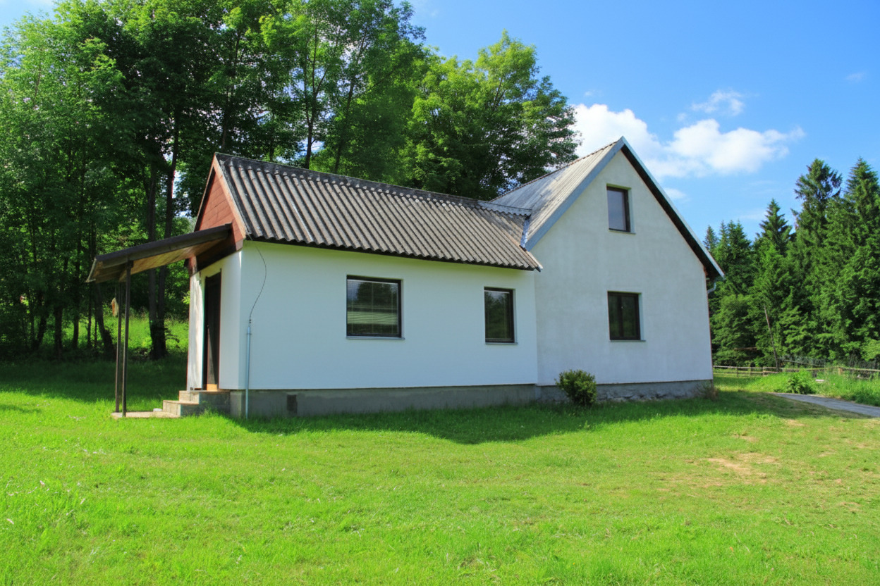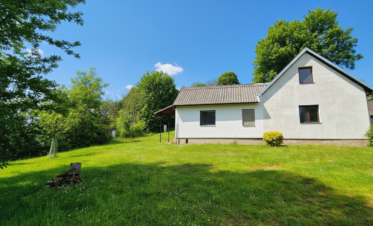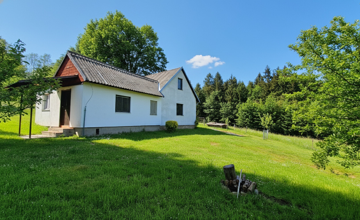 Menší chata na velmi pěkném místě na samotě u lesa, 4 km od Nového Města na Moravě na Českomoravské vrchovině.