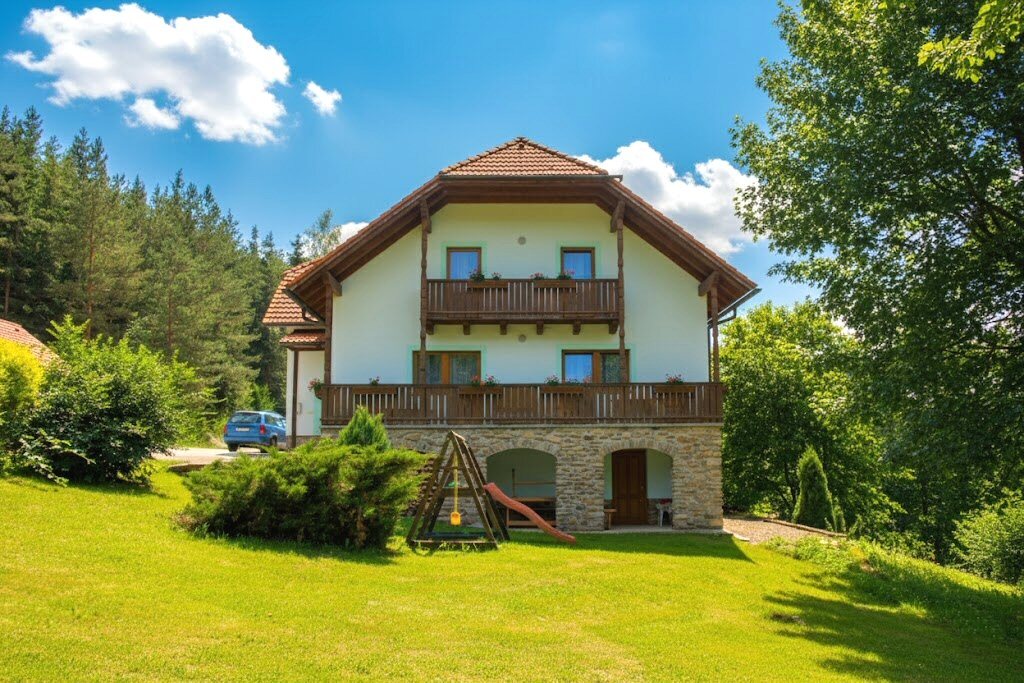 Velmi atraktivní chalupa s wellness místností (vířivka, infrasauna) a s vlastním rybníkem s možností rybaření a koupání u lesa, 9 km od Prachatic a 30 km od Českého Krumlova (UNESCO) na rozhraní jižních Čech a Šumavy.