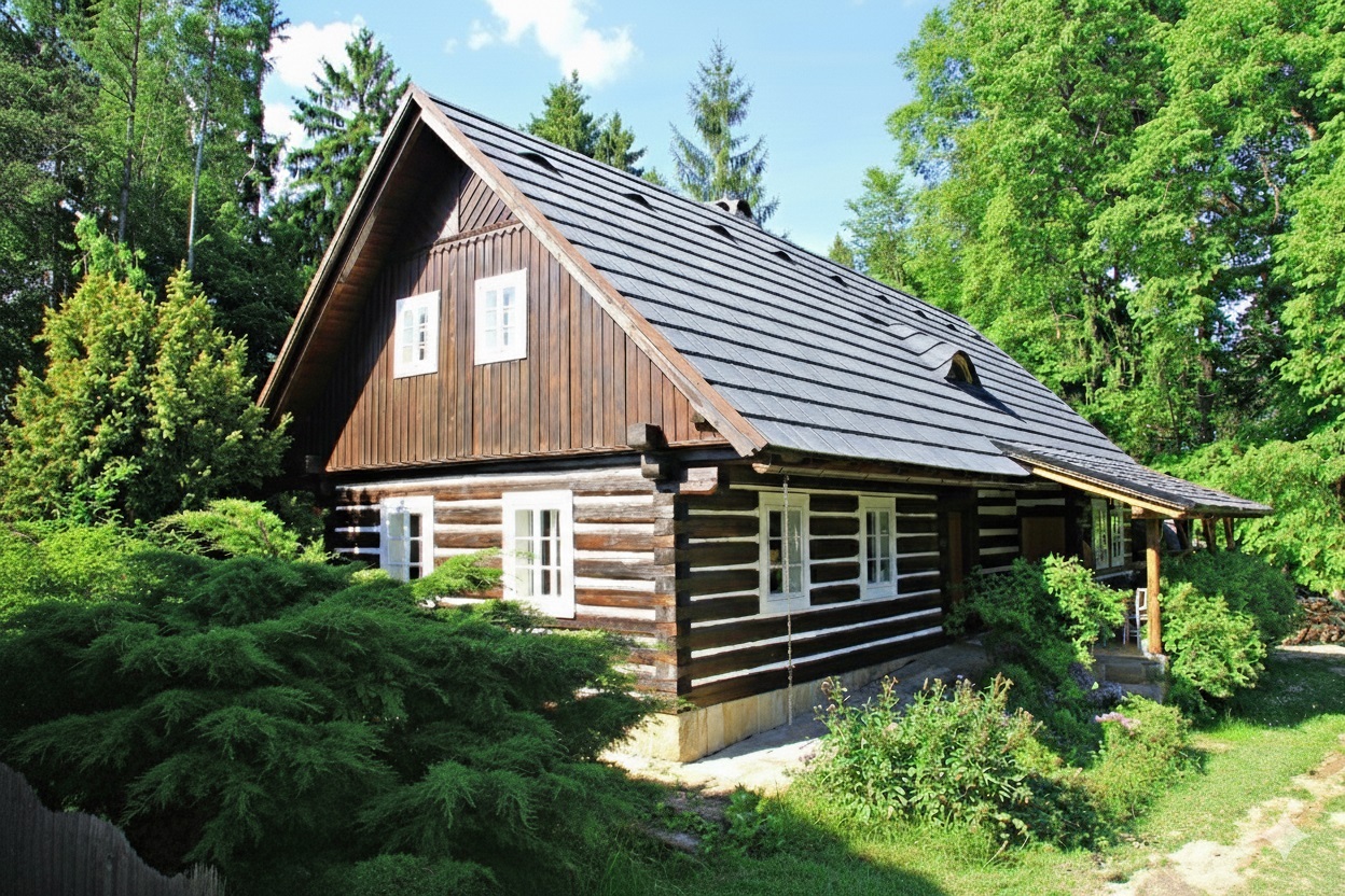 Prestiżowy drewniany domek z wpuszczone zadaszony basenem z podgrzewaną wodą morską w odległej części lasu, 4 km od Hruba Skala, 20 km od Jicin aquapark w Czeskim Raju.