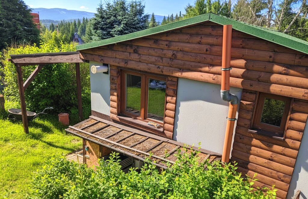 Mimořádně atraktivně vybavená srubová chata s vířivým koupacím sudem, pod Klínovcem, 5 km od Kovářské a 10 km od SKI areálu Klínovec v Krušných horách.