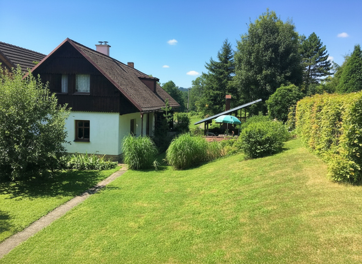 Stylová chalupa s bazénem a saunou na klidném místě, v turisticky velmi atraktivní oblasti, 1 km od rekreačního rybníka a 13 km od Hořic ve východních Čechách.