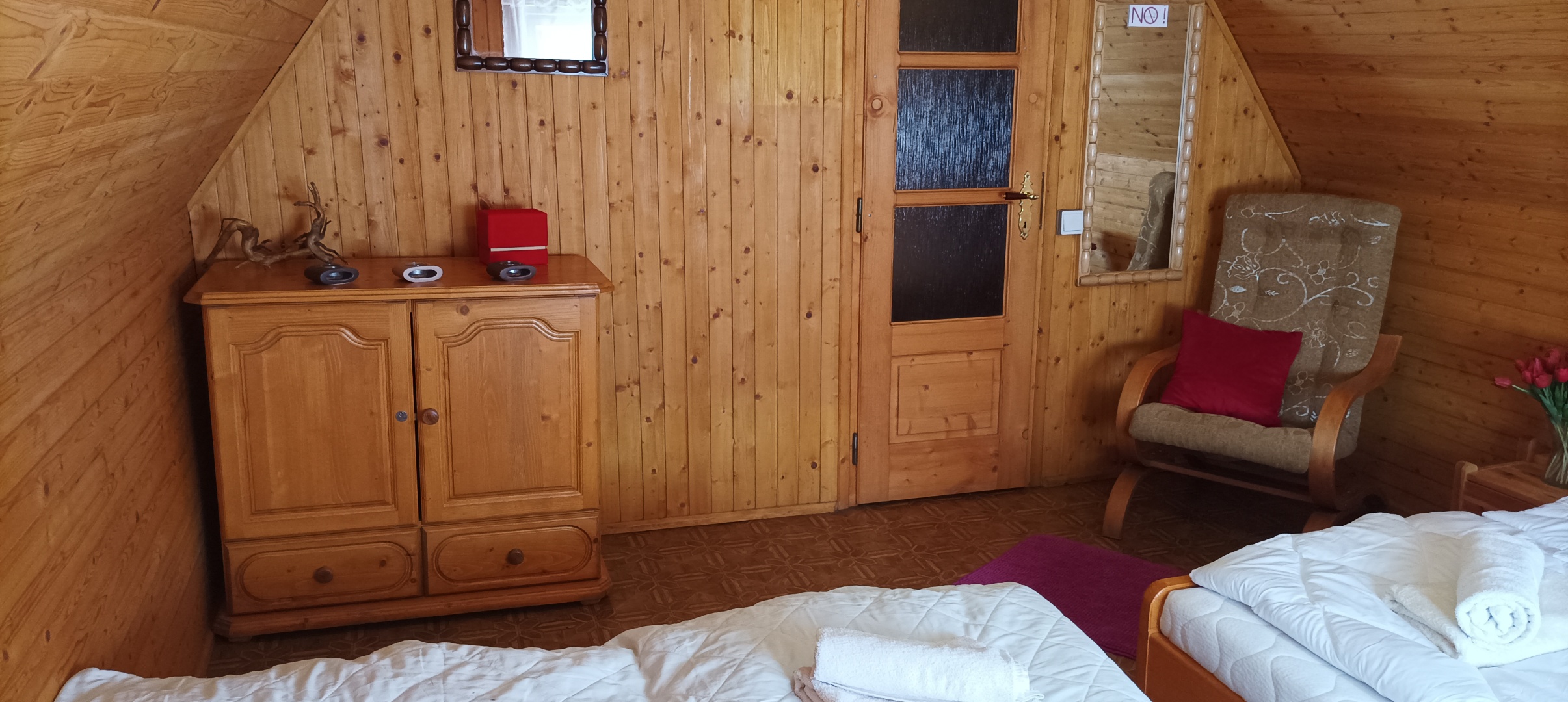 Oblíbená dřevěná chata v lese s upraveným okolím, 1 km od celoročně otevřeného termálního koupaliště v Liptovském Jánu a 12 km od aquaparku Tatralandia v Nízkých Tatrách.