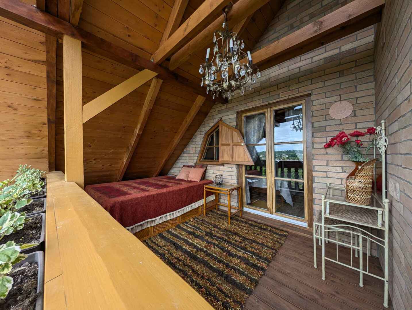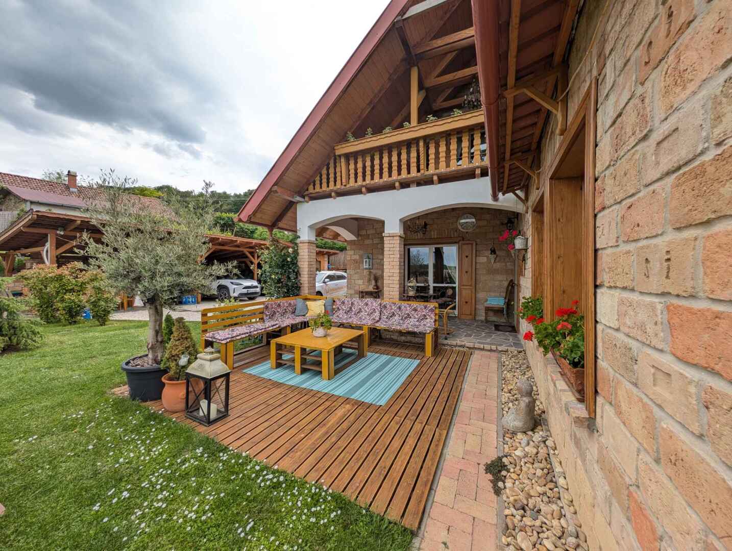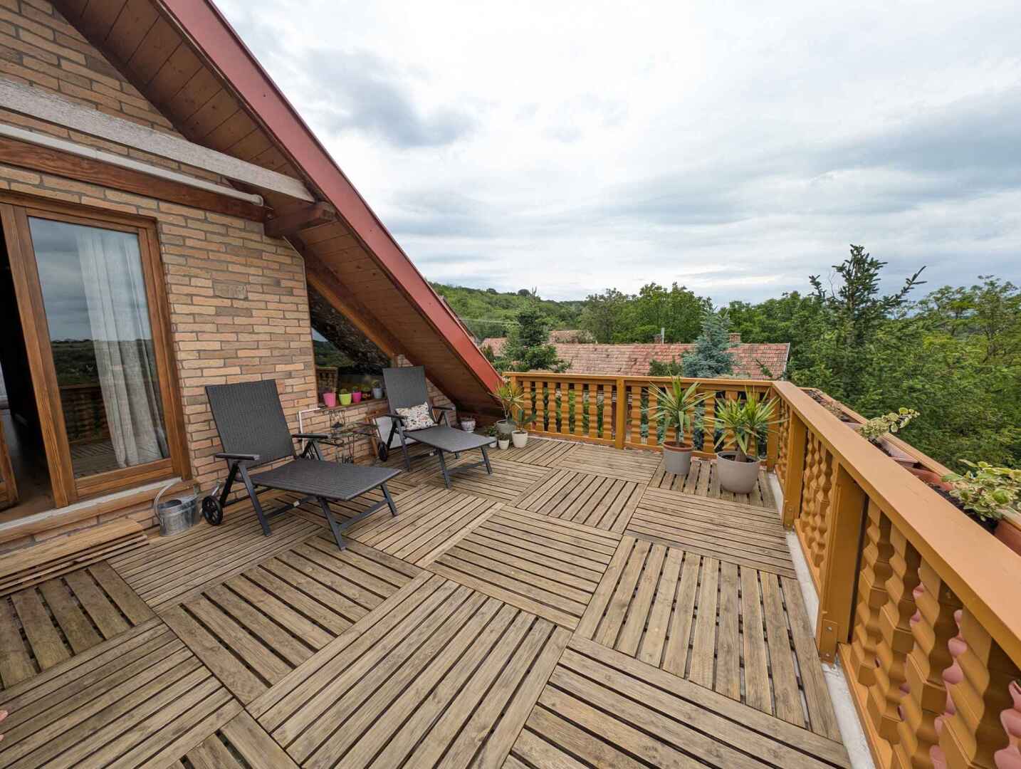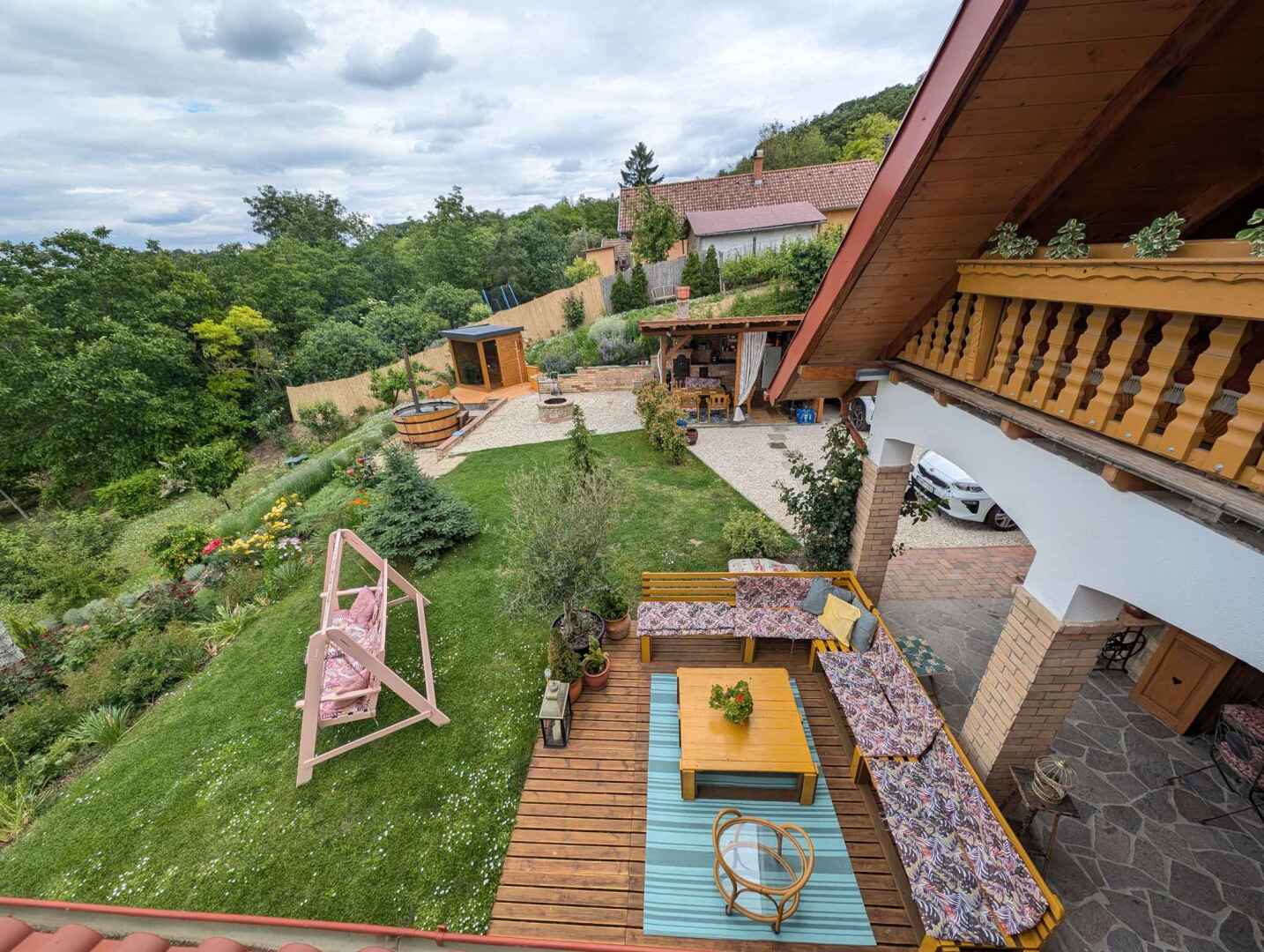 Atraktivní chalupa s letní kuchyní, dřevěným koupacím sudem s vířivkou a výhledem do okolí, 6 km od jezera Balaton, 15 km od rekreačního střediska Siófok, na jihovýchodním pobřeží Balatonu v Maďarsku.