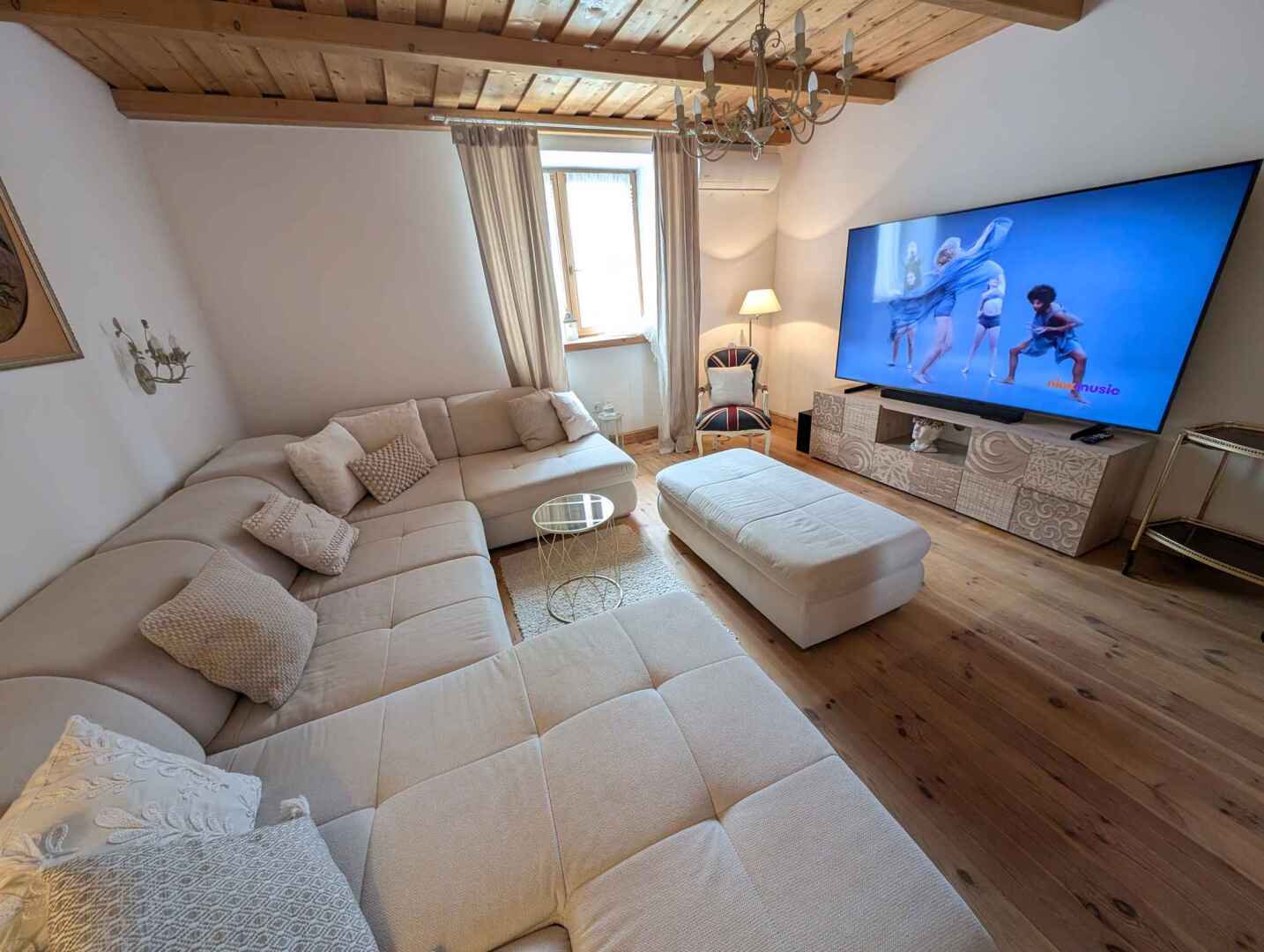 - vybavená kuchyně (indukční sporák, lednice s mrazničkou, myčka, mikrovlnná trouba, kávovar, toustovač, rychlovarná konvice) s jídelním koutem a kabelovou LCD