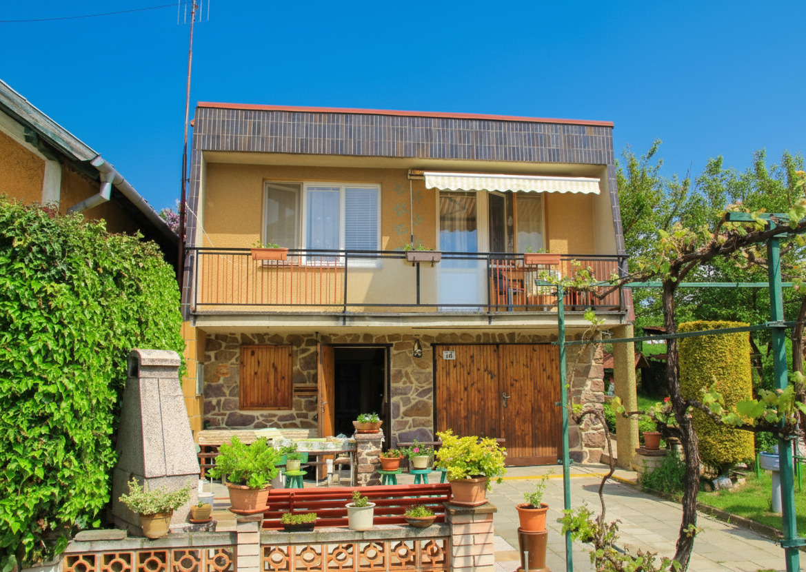 Rekreační domek v zahradě na konci obce Nový Šaldorf, v oblasti vinných sklepů, 3 km od Znojma na jižní Moravě.