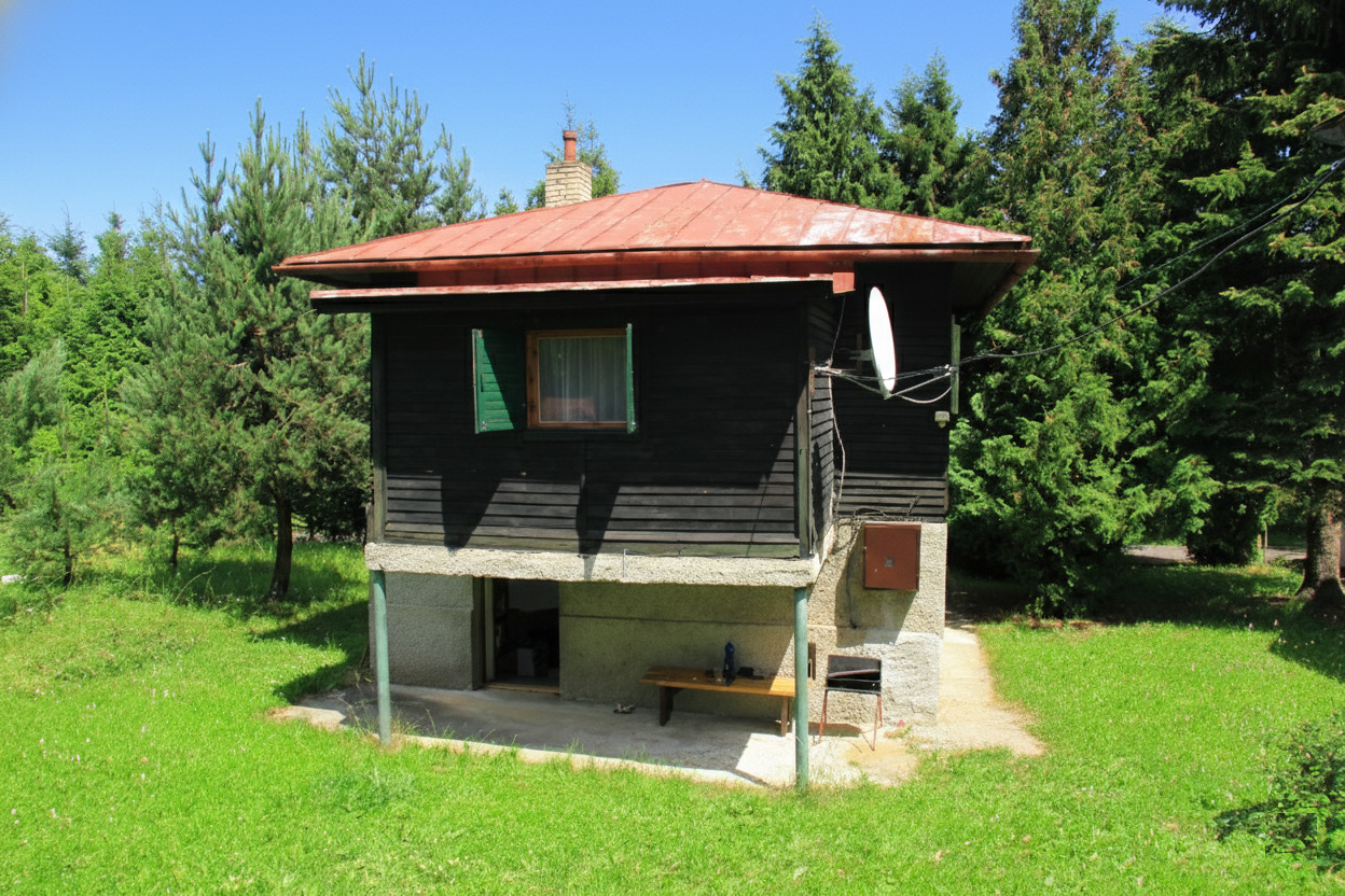 - vybavený kuchyňský kout (plynový sporák, lednička, mikrovlnná trouba, rychlovarná konvice) v obývací ložnici s TV, krbovými kamny a 3 lůžky