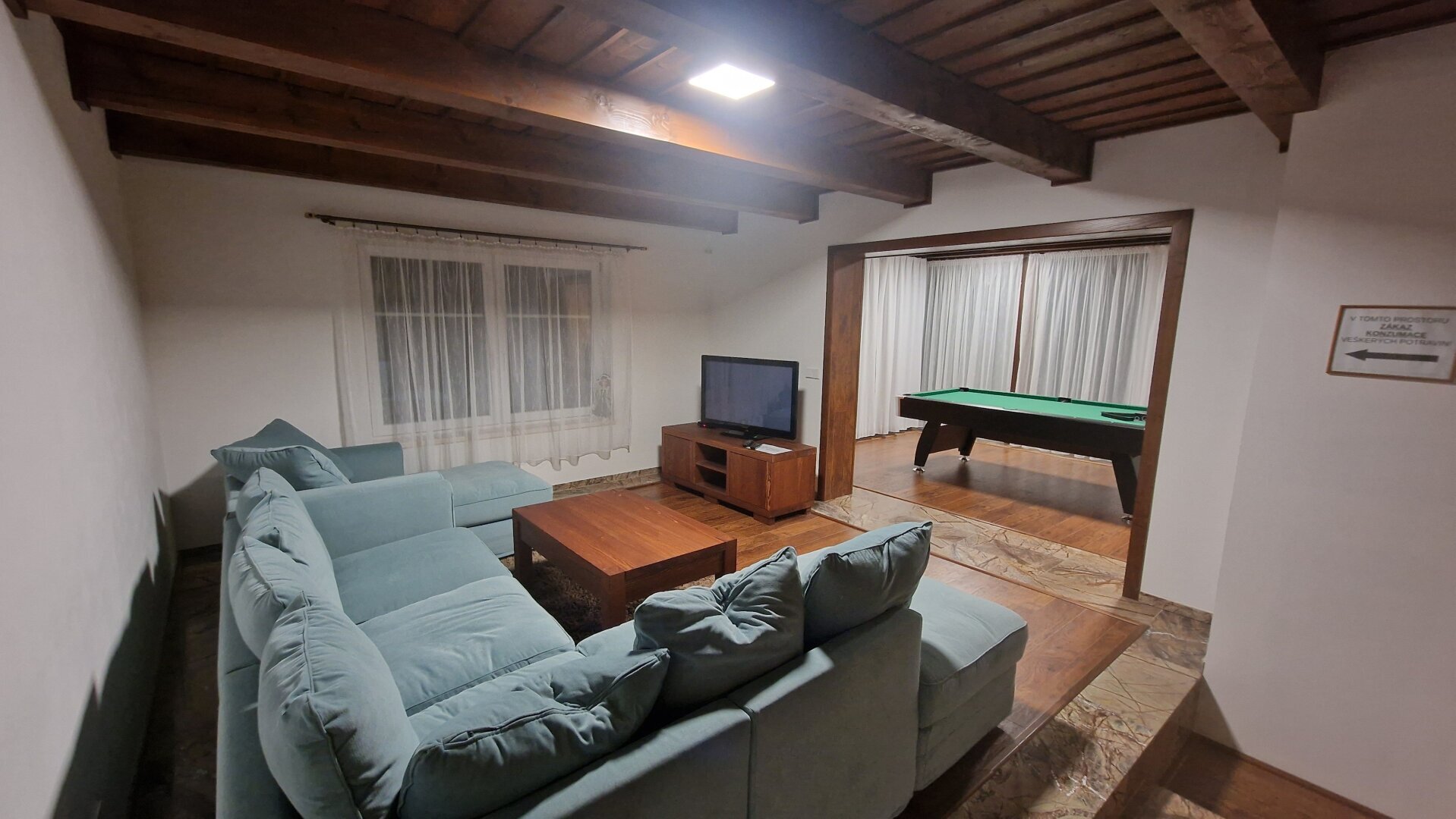 - obývací pokoj s LCD Netflix, Disney+, Spotify, stream z chytrých zařízení