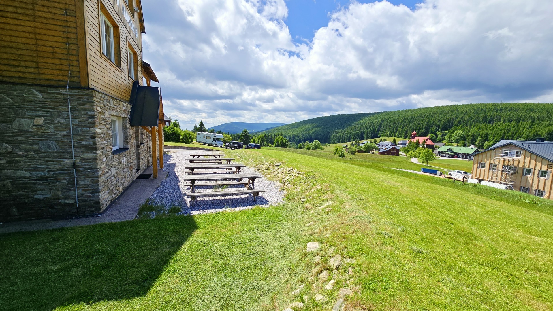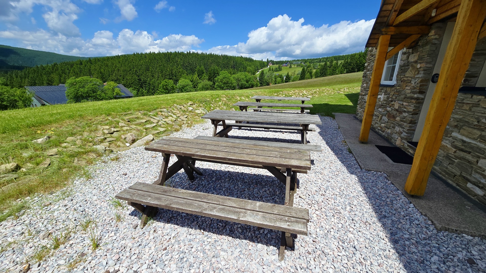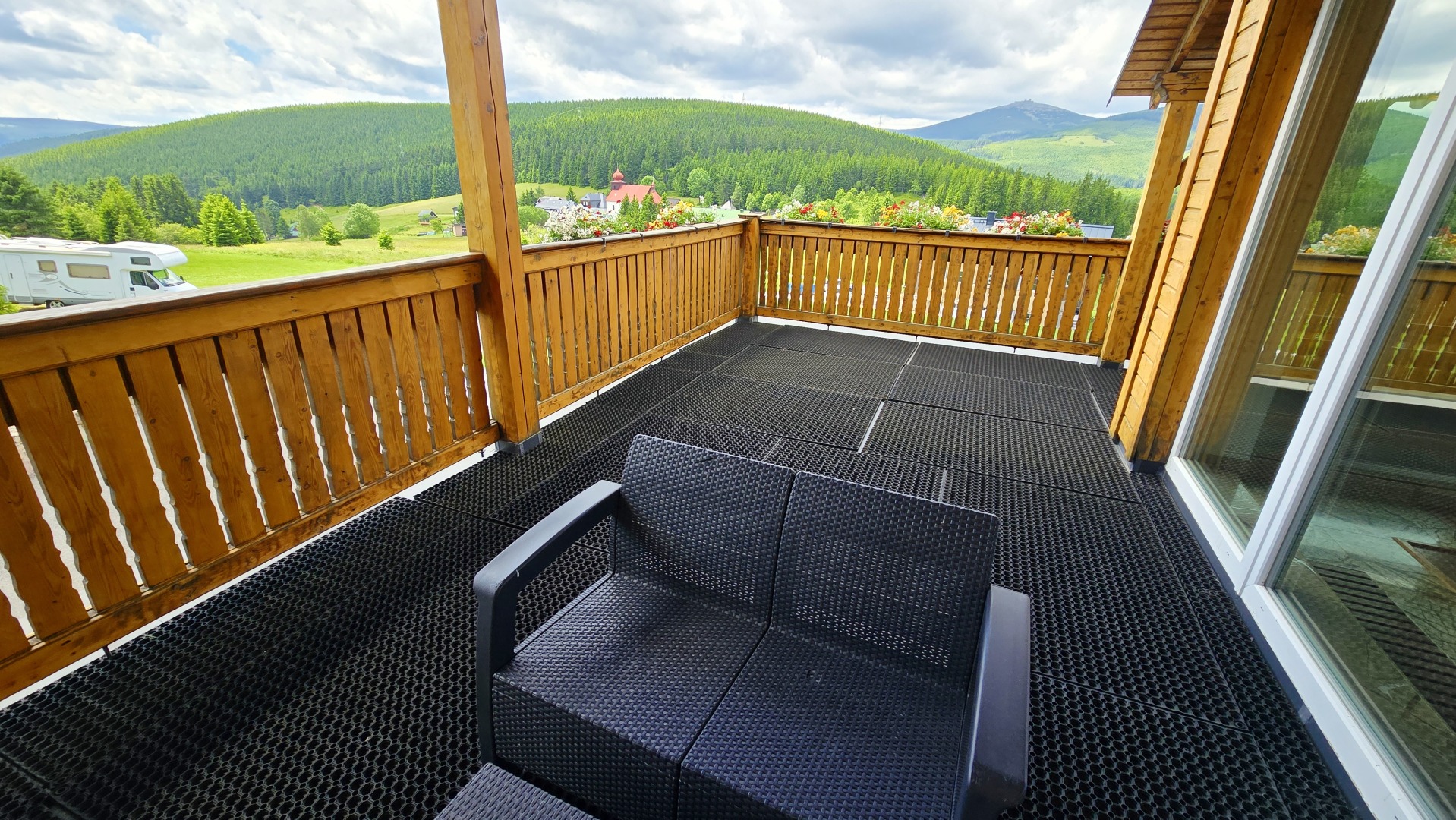 - zastřešená osvětlená terasa s výhledem na Sněžku