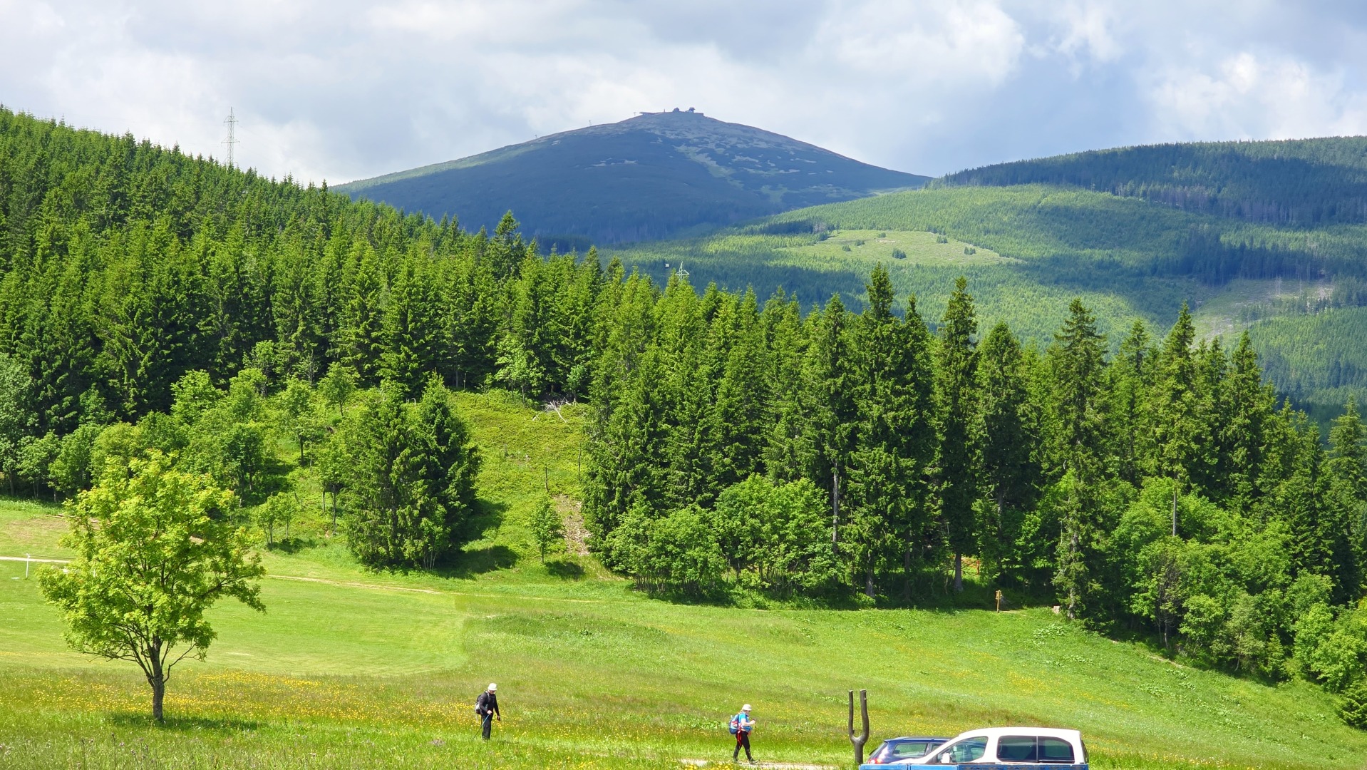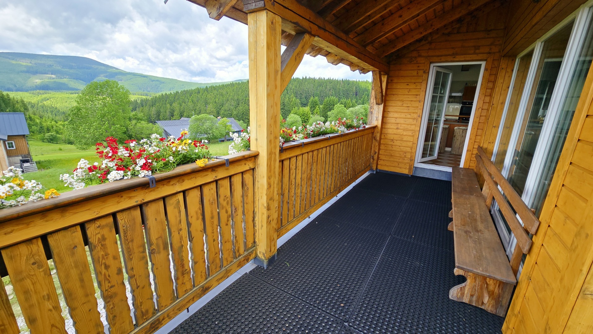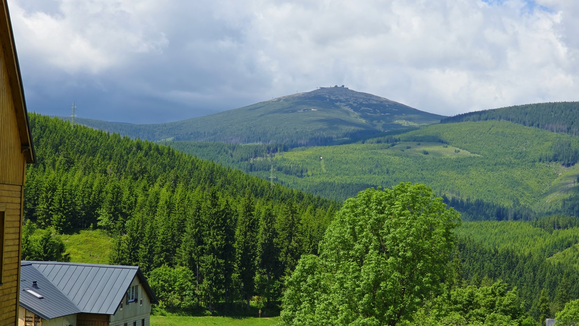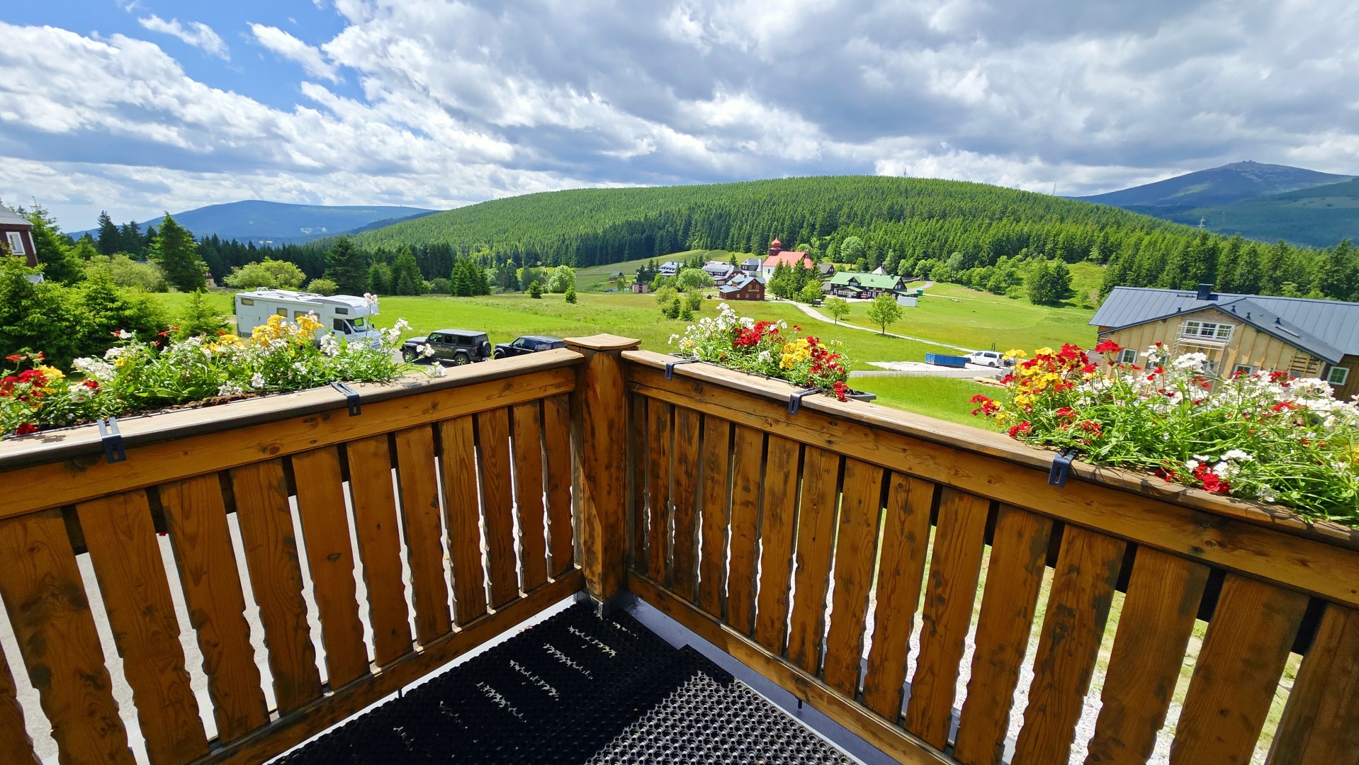 - zastřešená osvětlená terasa s výhledem na Sněžku