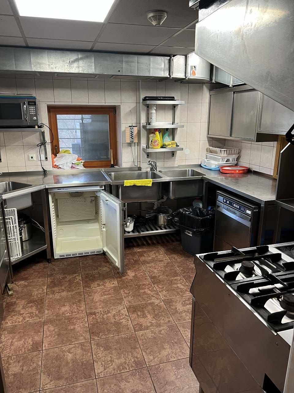 - profi kuchyně (plynový sporák, indukční deska, konvektomat, lednice, dvě fritézy, elektrický gril, mikrovlnná trouba, myčka)