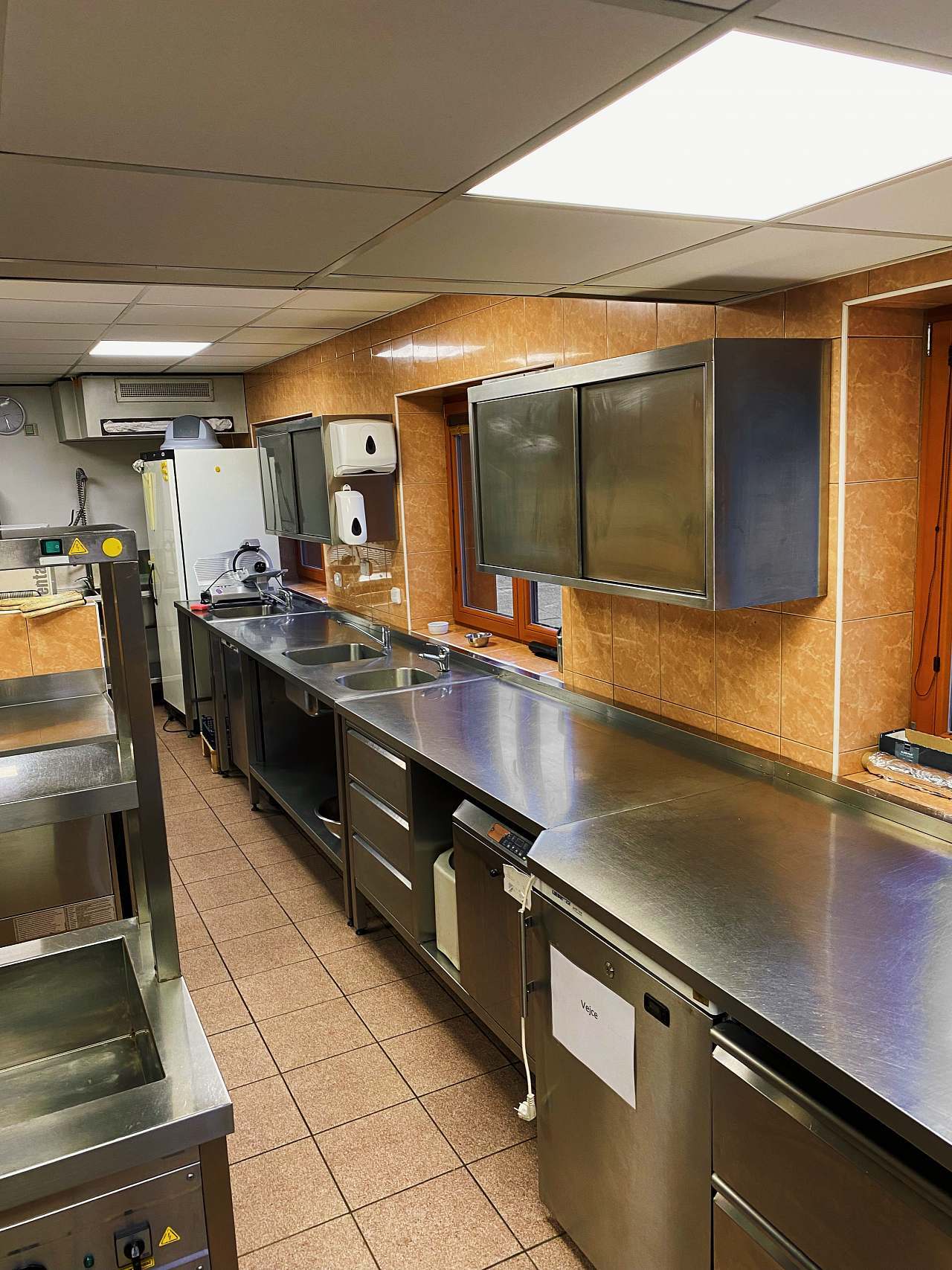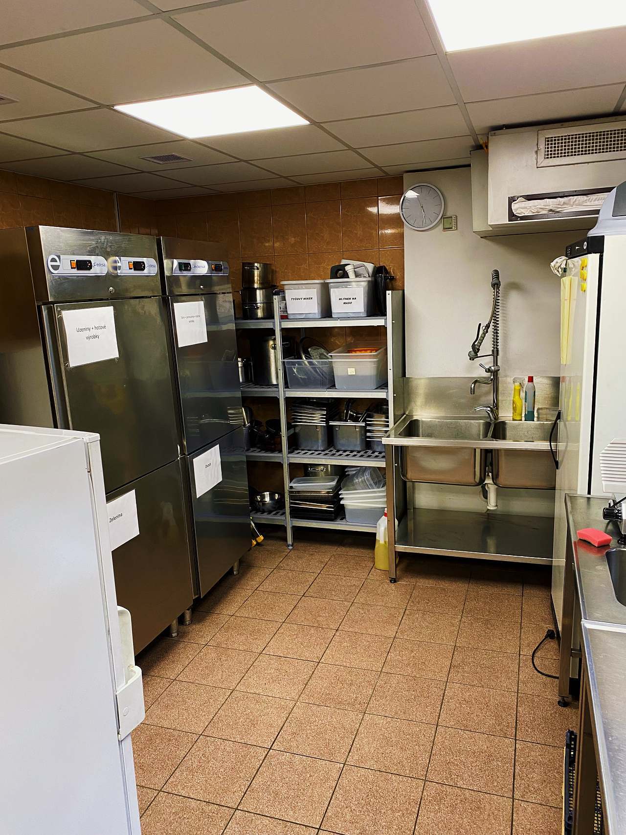 - profi kuchyně (plynový sporák, indukční deska, konvektomat, lednice, dvě fritézy, elektrický gril, mikrovlnná trouba, myčka)