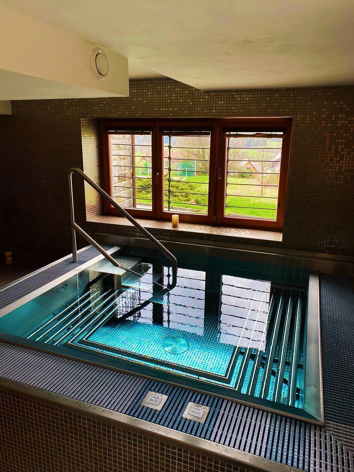 V suterénu chalupy se nachází luxusní wellness o rozloze 120 m², které lze objednat za příplatek: (finská sauna, parní sauna, infra sauna, vířivka, vědro odvahy, ledová tříšť, tropický déšť, přívalové sprchy, vyhřívaná lehátka, ochlazovací káď, odpočívárna, sprchy, venkovní terasa) - 1 den: 5000,- Kč, 2 dny: 9000,- Kč, 3 dny: 11000,- Kč, 4 dny: 13000,- Kč, 5 dnů: 15000,- Kč, 6 dnů: 17000,- Kč, 7 dnů: 18000,- Kč.