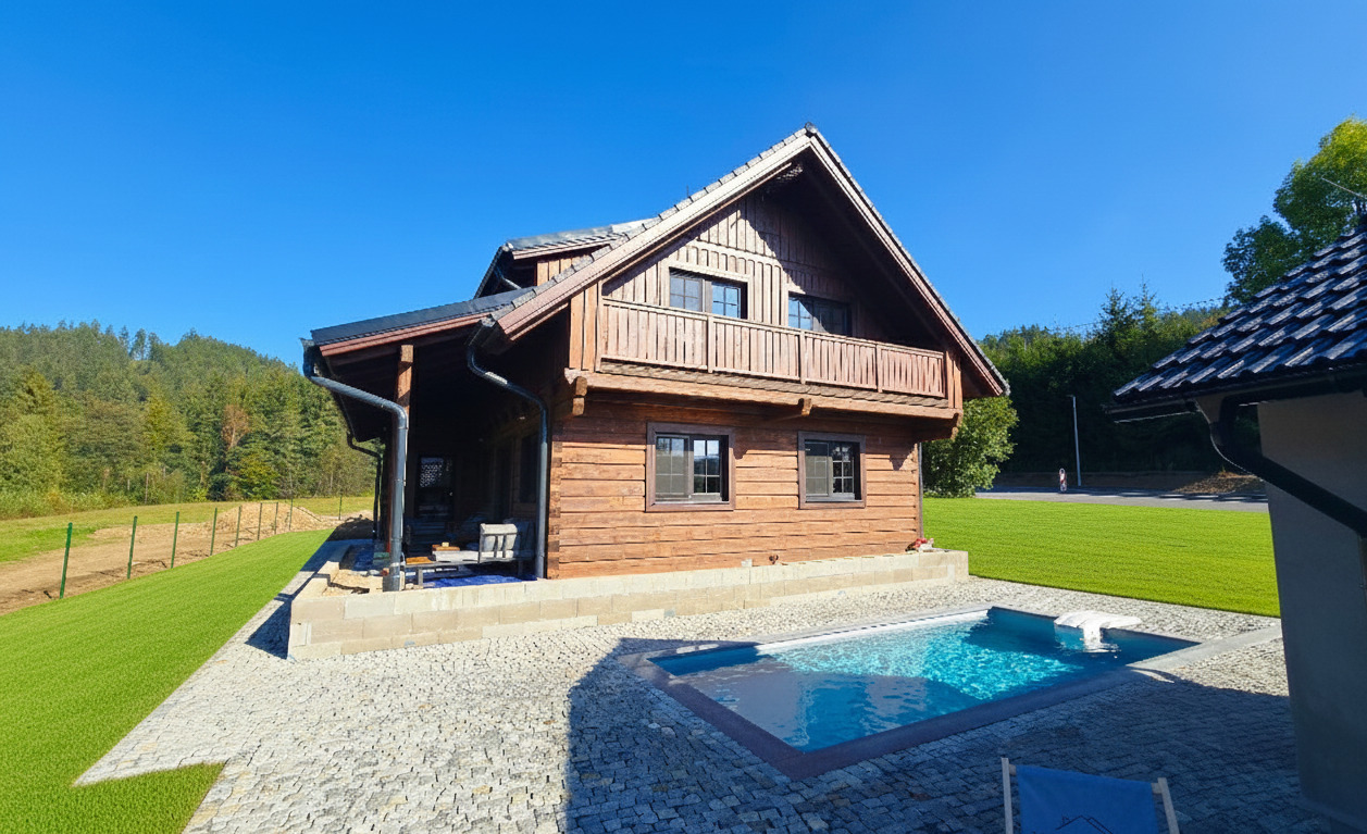 Exkluzivní, velmi nadstandardně vybavená chalupa s venkovním zapuštěným, zastřešeným, vyhřívaným bazénem se slanou vodou, masážním bazénem SPA, kombinovanou saunou a letní kuchyní, pod Pustevnami, 10 km od valašského muzea v přírodě v Rožnově pod Radhoštěm a 15 km od SKI areálu Bílá v Beskydech.