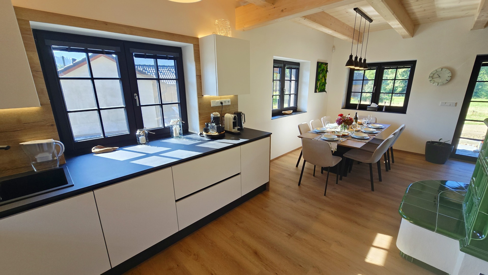 Chalupa je nadstandardně vybavena kvalitním luxusním italským nábytkem.