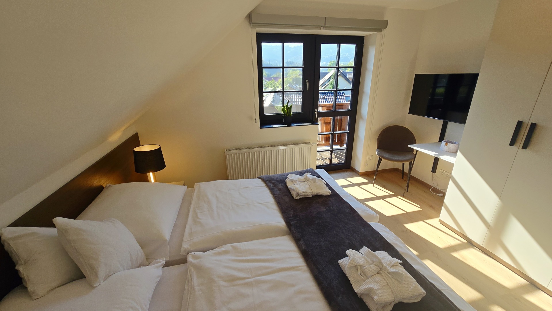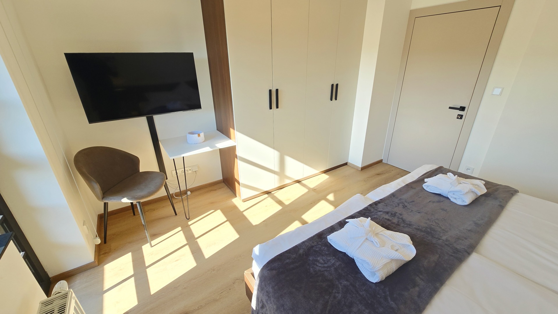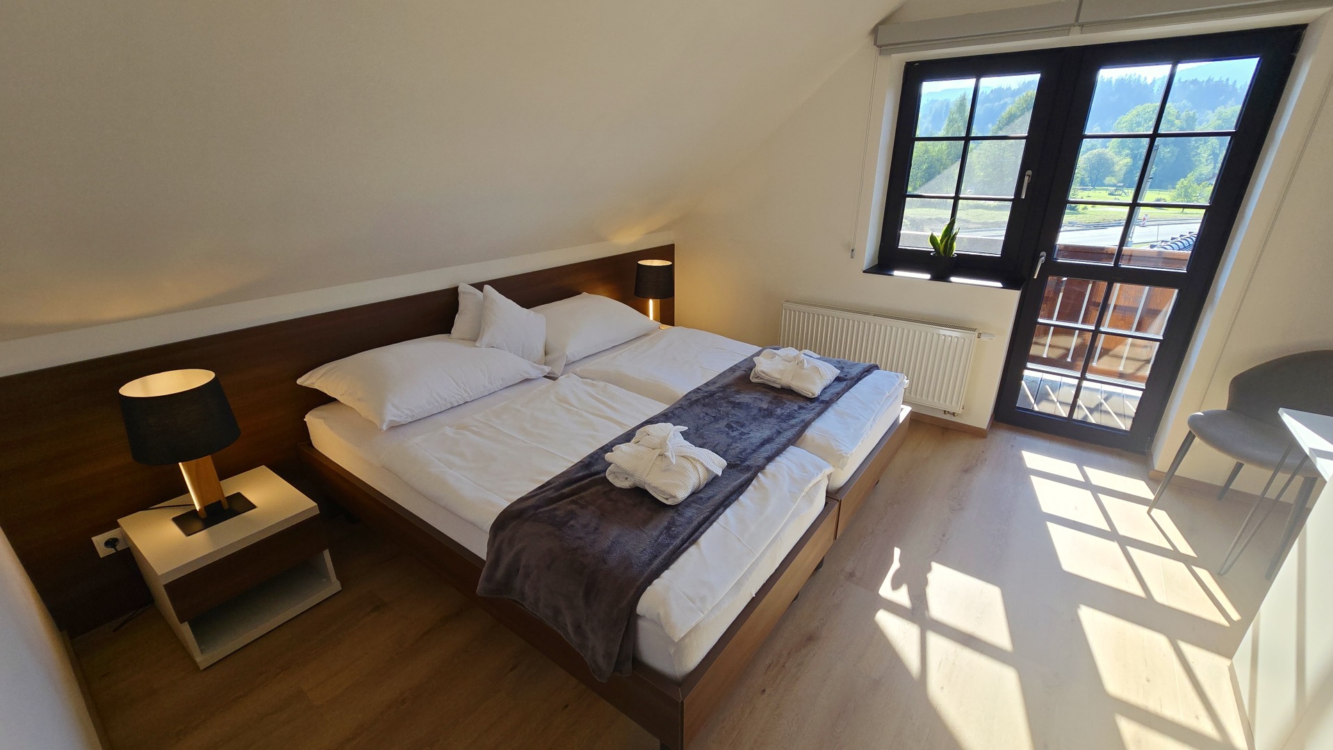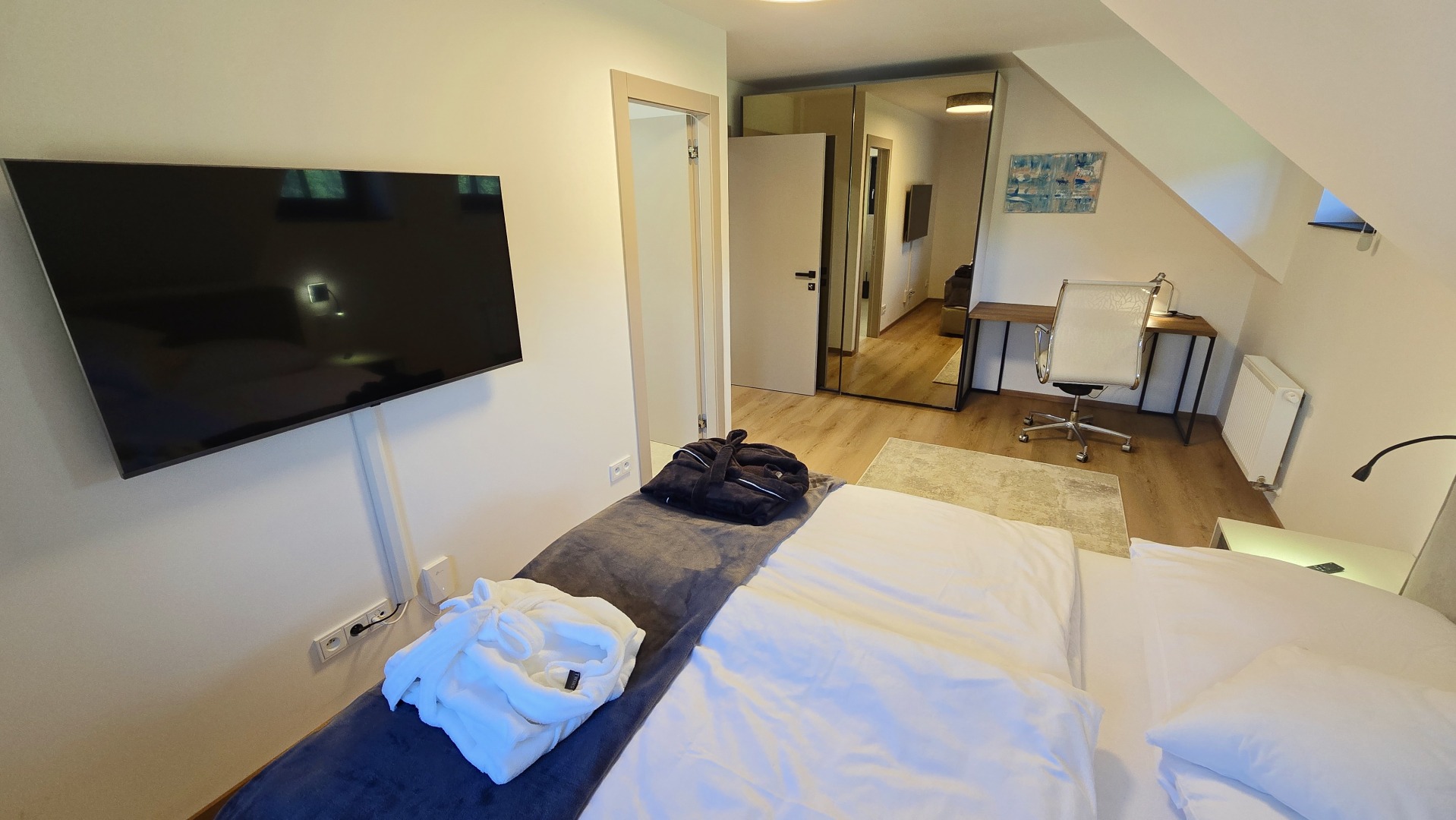 - 3 ložnice (2/2, 1/3) - každá s TV, 2 ložnice v patře mají přímý vstup na terasu s posezením