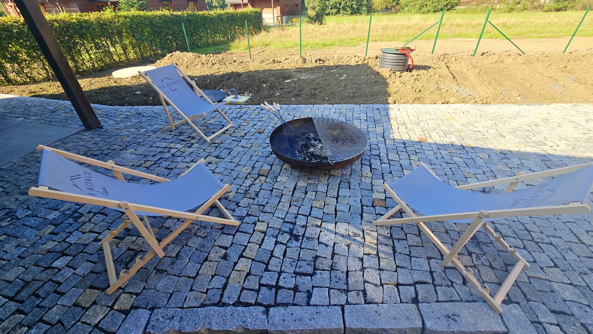 - zastřešená osvětlená plně vybavená letní kuchyně (lednička s mrazákem, dřez, varná deska, BBQ plynový gril, otevřený krb) s posezením