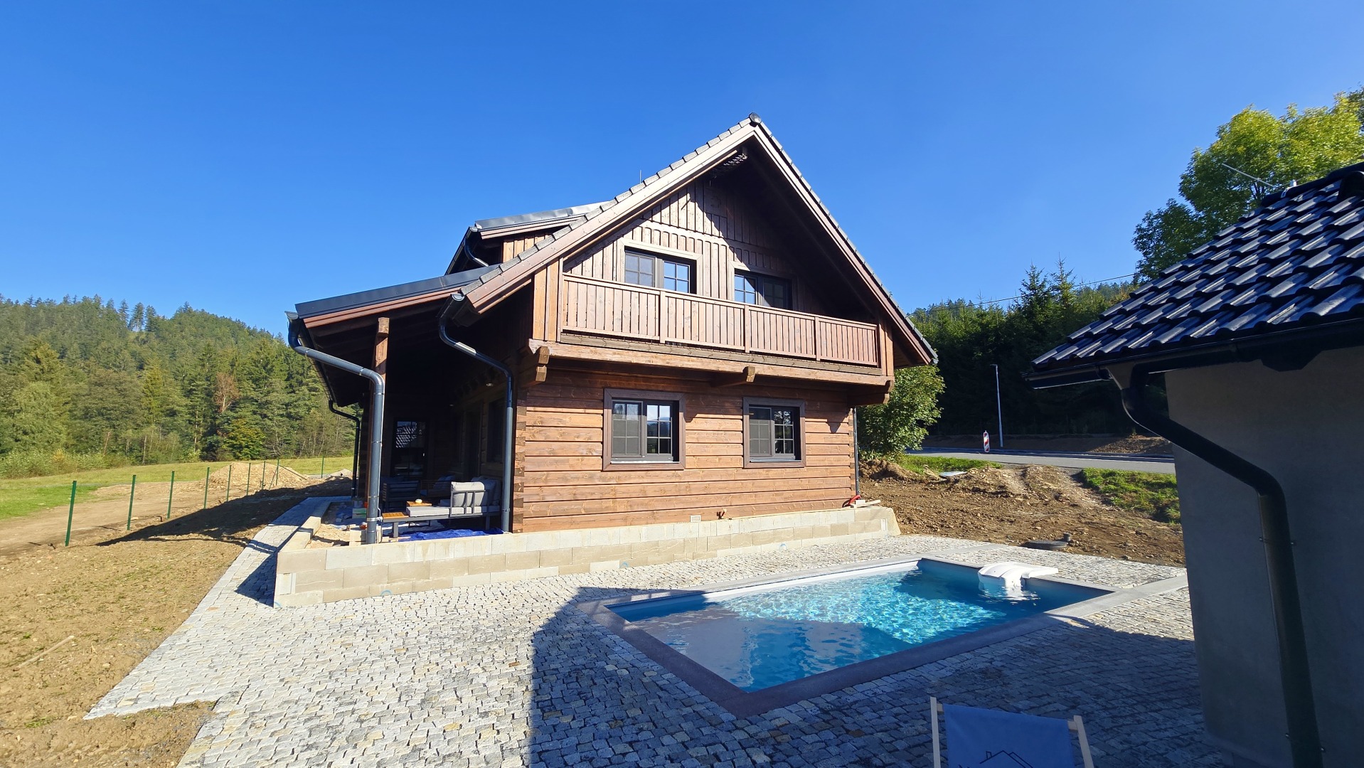 Exkluzivní, velmi nadstandardně vybavená chalupa s venkovním zapuštěným, zastřešeným, vyhřívaným bazénem se slanou vodou, masážním bazénem SPA, kombinovanou saunou a letní kuchyní, pod Pustevnami, 10 km od valašského muzea v přírodě v Rožnově pod Radhoštěm a 15 km od SKI areálu Bílá v Beskydech.