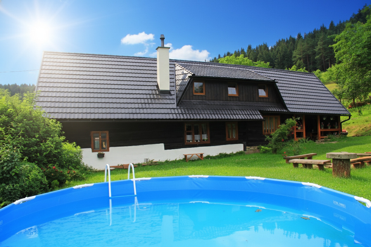 Typická atraktivní a útulná valašská chalupa u lesa s bazénem a s pěkným výhledem do okolí, 1 km od lyžařského vleku, 5 km od Nového Hrozenkova a 12 km od Velkých Karlovic v Beskydech.