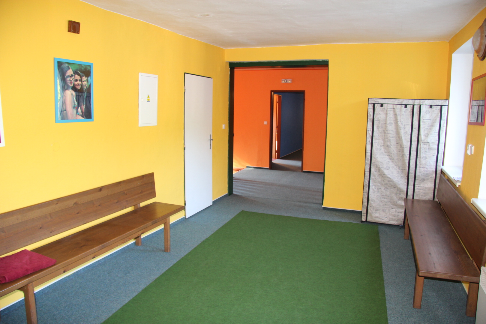 - dětský koutek (hrací koberec, dřevěné hračky, skládačky, omalovánky, časopisy, molitanové podložky, stolečky, židličky)