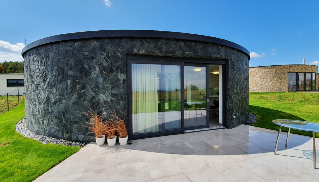 Mimořádně atraktivní a luxusní, atypicky řešená přízemní kruhová vila s vířivou vanou SPA a saunou, přímo u golfového hřiště, 5 km od rekreačního rybníka Suchý a 15 km od Boskovic na Drahanské vrchovině.