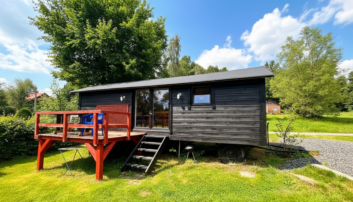 - kuchyňský koutek (el. vařič, lednička, mikrovlnná trouba, rychlovarná konvice) v obytné místnosti s jídelním stolem a 2 lůžky