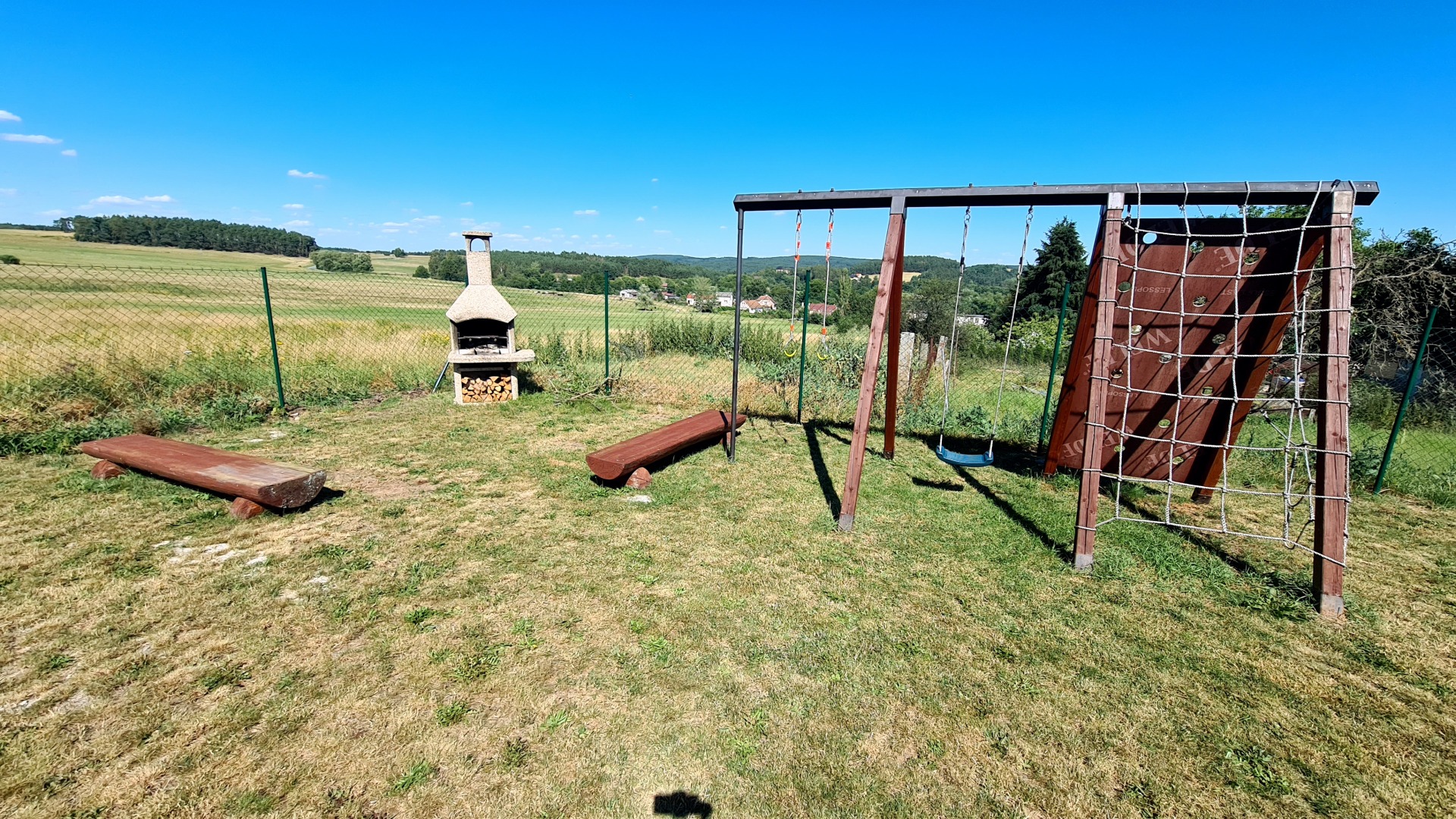 - dětský koutek (lezecká stěna, houpačka, branky na fotbal, síť nad badminton)