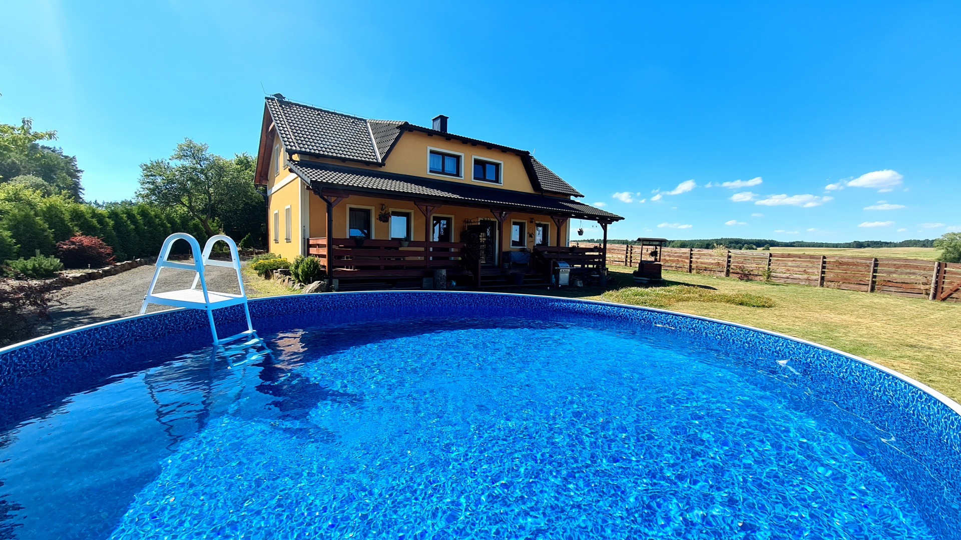 Pěkná a útulná chalupa s venkovním vyhřívaným bazénem na klidném a slunném místě, pod lesem, 3 km od obce Staré Sedlo, 17 km od Stříbra a 30 km od Domažlic v západních Čechách.