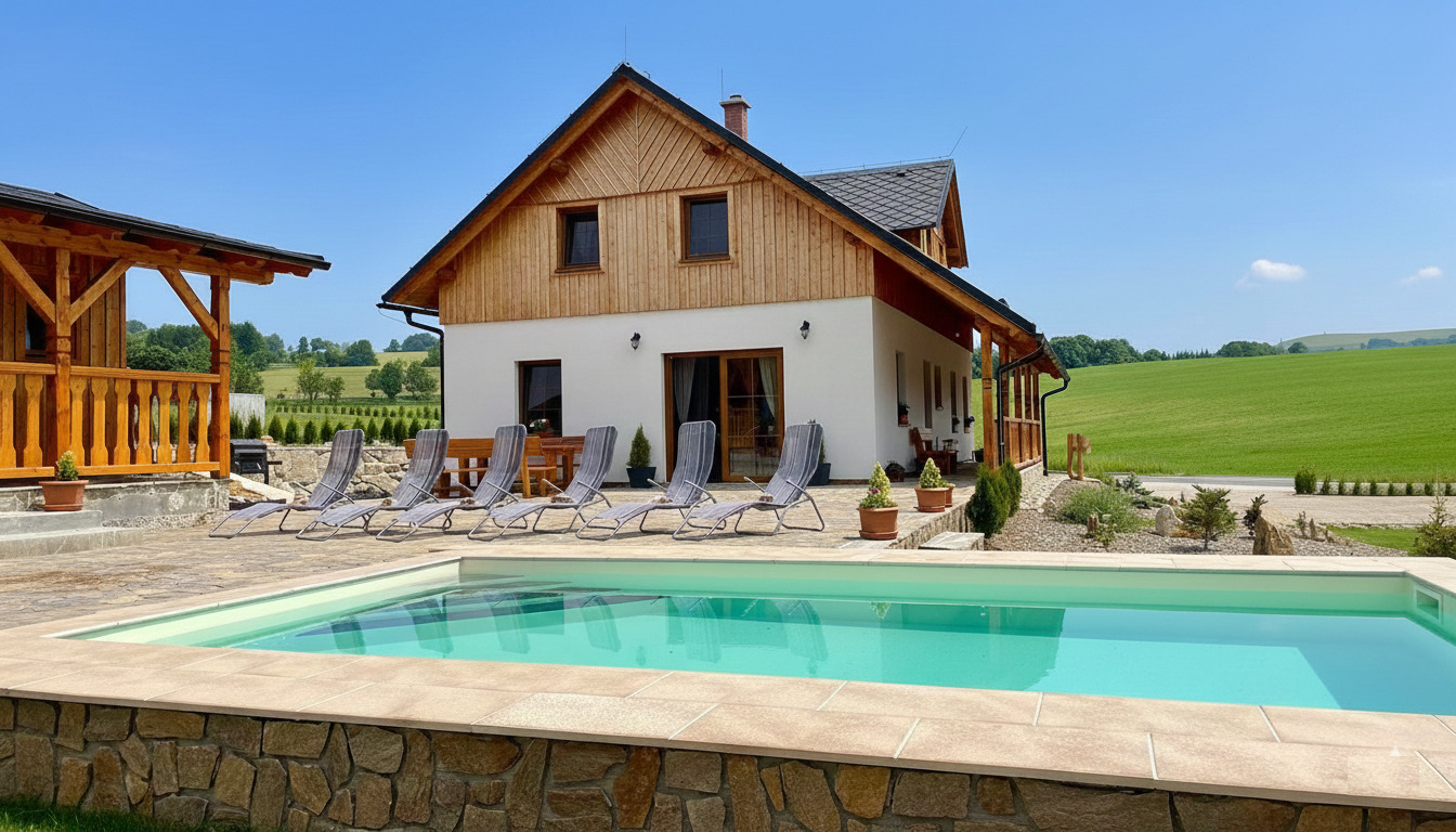 Mimořádně atraktivní chalupa s venkovním zapuštěným bazénem, saunou a grill party, 7 km od horského areálu Dolní Morava a 15 km od Pastvinské přehrady na rozhraní Orlických hor a Jeseníků.