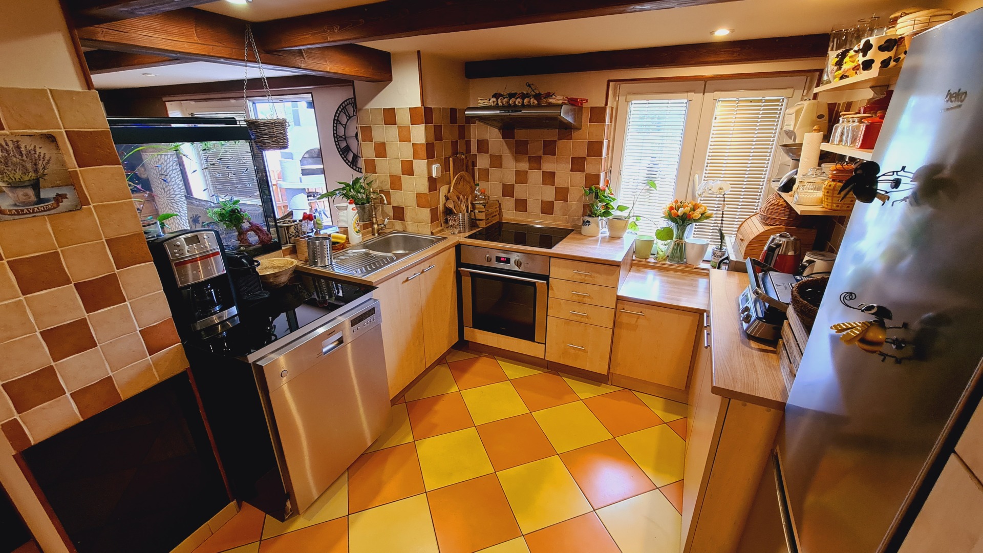 - kuchyně (sklokeramická deska, el. trouba, lednička s mrazákem, mikrovlnná trouba, myčka, rychlovarná konvice, překapávač, kávovar De'Longhi, kontaktní gril De'Longhi, pekárna na chleba, sušička ovoce)