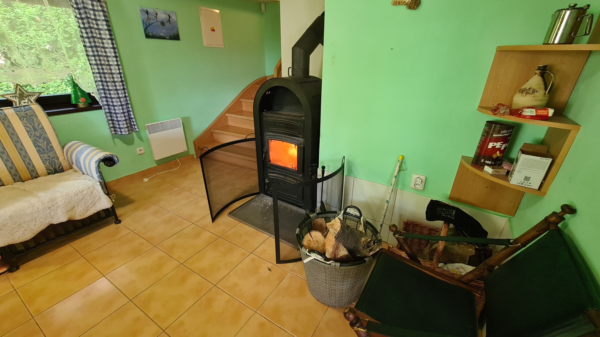 - krbová místnost s krbovými kamny a s posezením
