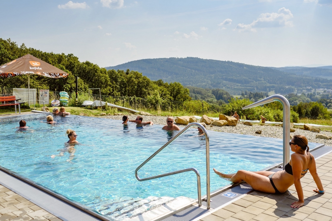 Nejbližší možnost koupání v bazénu v hotelu 100 m (celonerezový venkovní bazén 12x5 m s infinity hranou, občerstvovací bufet, převlékárna, sprchy, sociální zařízení), wellness centrum v hotelu (vnitřní hotelový bazén 10x6 m, whirpool, saunová zóna), přehrada Luhačovice 500 m (rybolov, půjčovna lodiček, šlapadel) s aquaparkem (vyhřívaný bazén s atrakcemi, tobogán), aquapark v Uherském Brodu 20 km (91m dlouhý tobogán, whirlpool, zábavný bazén, plavecký bazén 25x2,4 m, sauna). Největší moravské lázně Luhačovice s přírodními léčivými prameny (Vincentka, Aloiska, Ottovka), odborná lázeňská péče, typická architektura. Výlety do okolí: přírodní památka Čertův kámen, hrady Rýsov, Starý Světlov, poutní místo Malenisko, památky lidové architektury Topolná.
