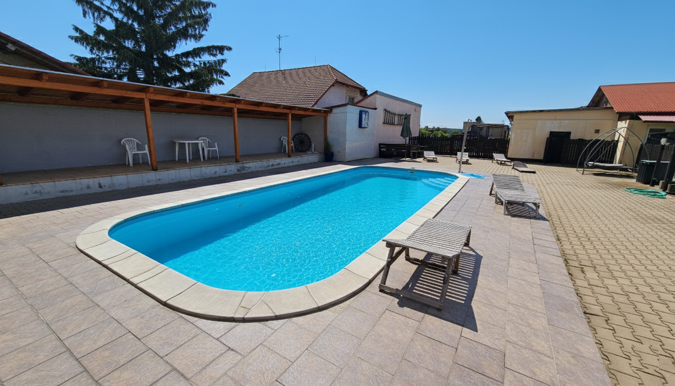 - venkovní zapuštěný osvětlený bazén 10x4 m (zdarma) se sprchou