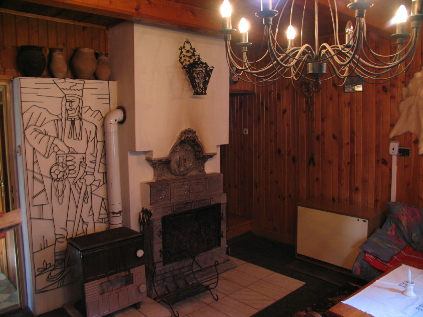 - obývací místnost s krbem a TV+SAT