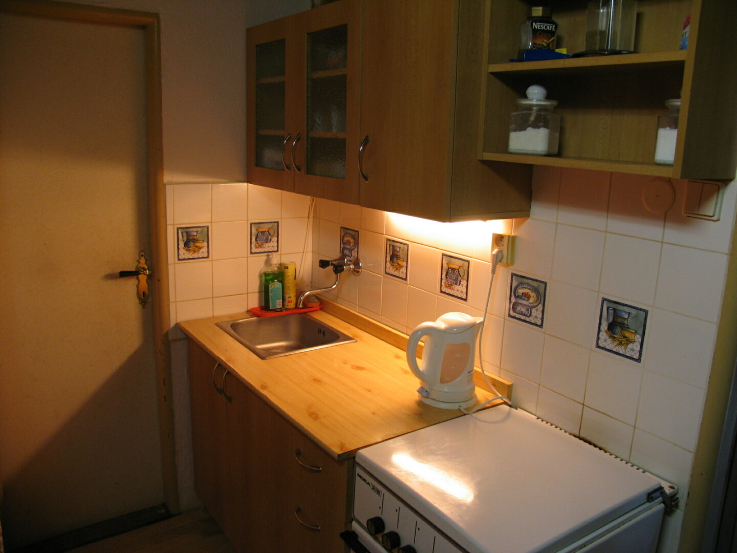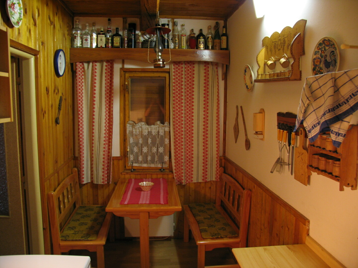 - kuchyně (plynový sporák, lednička, kávovar, komora na potraviny) s posezením