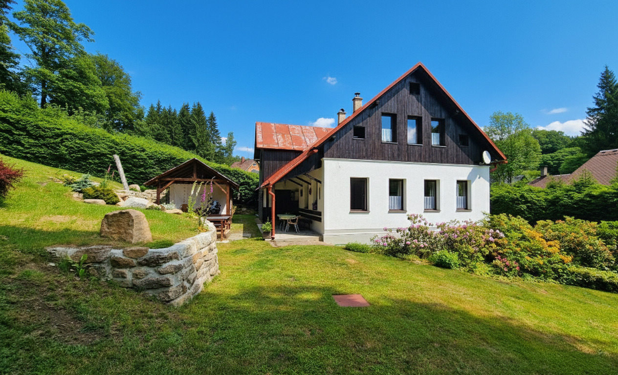 Velká atraktivní chalupa s wellness místností, u lesa a horského potůčku, 5 km od SKI areálu Severák a 5 km od Jablonce nad Nisou v Jizerských horách.