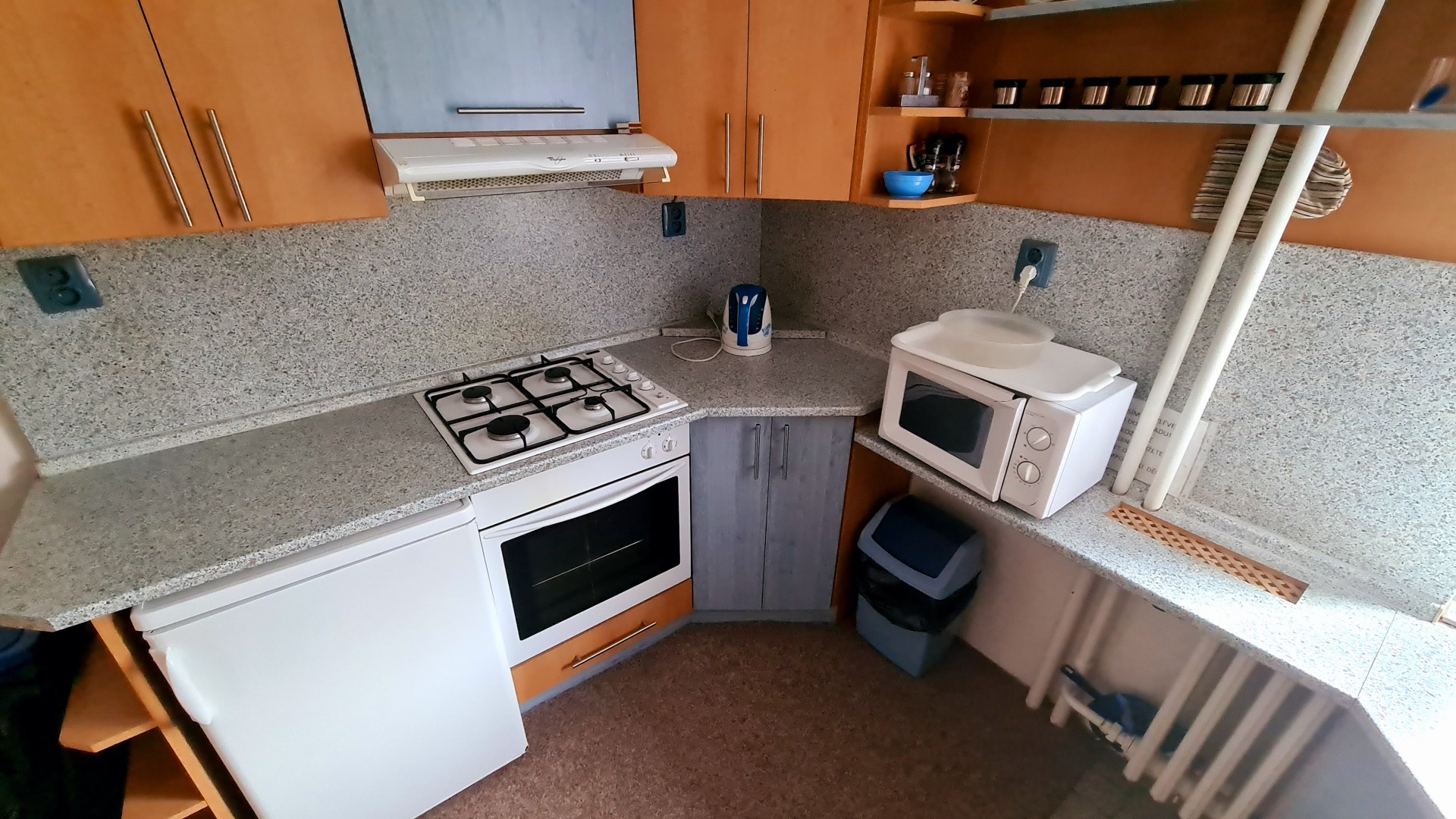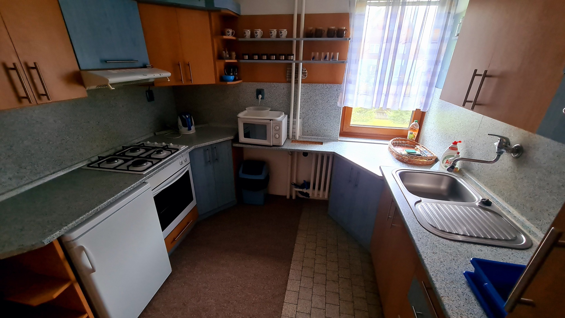 - kuchyně (plynový sporák s el. troubou, lednička, mikrovlnná trouba, rychlovarná konvice)