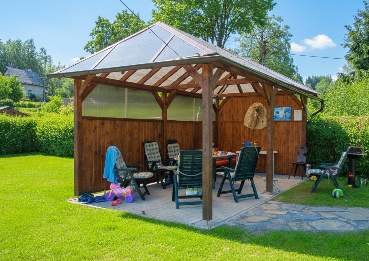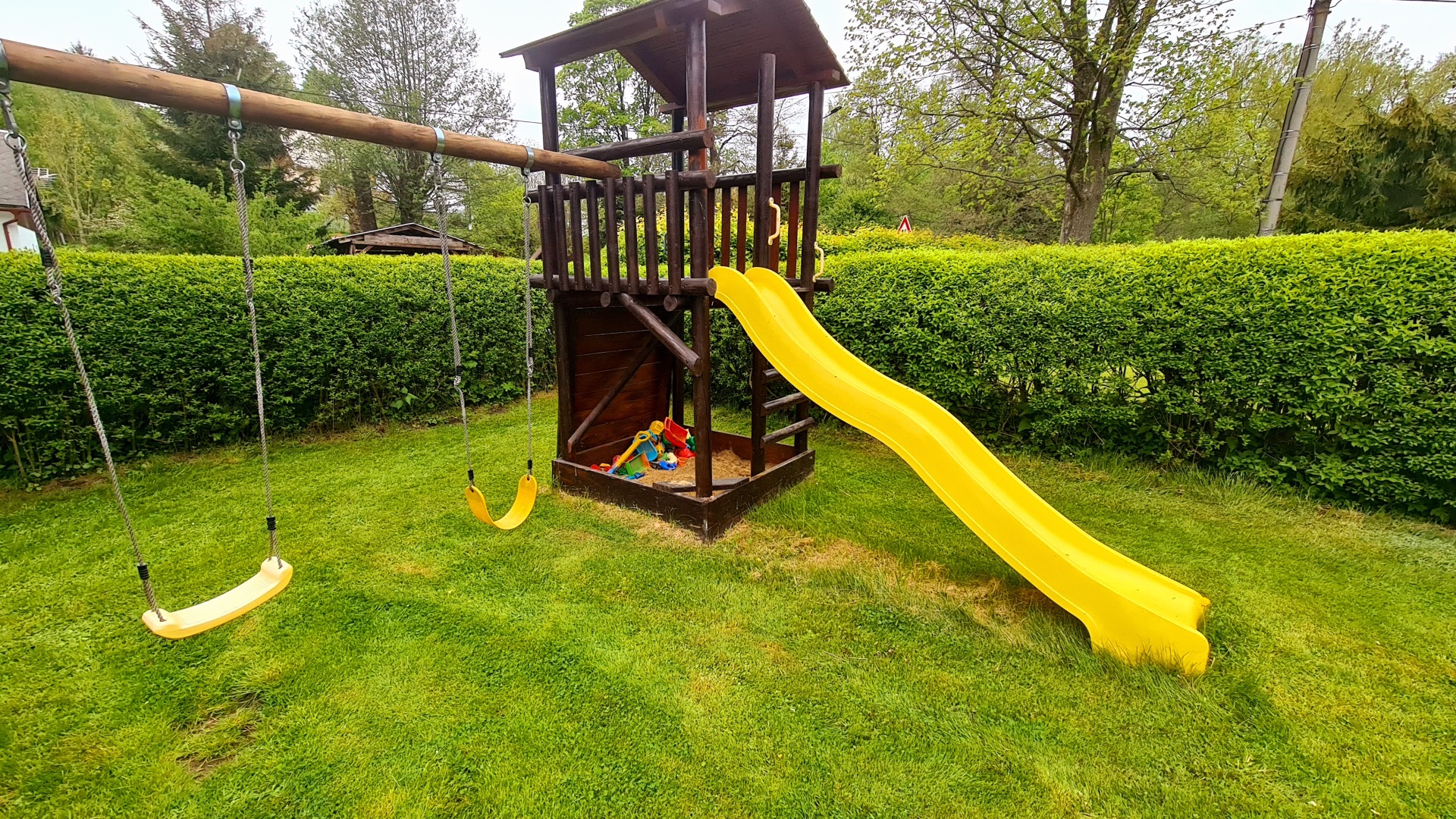 - dětské hřiště (3x houpačka, skluzavka, žebřík, stěna)