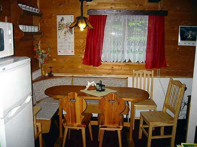 - kuchyně (el.sporák, lednička, mikrovlnná trouba, rychlovarná konvice, kávovar) s posezením