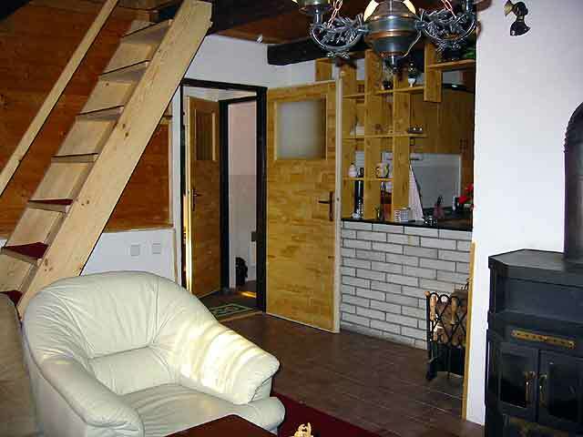 - obývací pokoj s TV-SAT-DVD a krbovými kamny