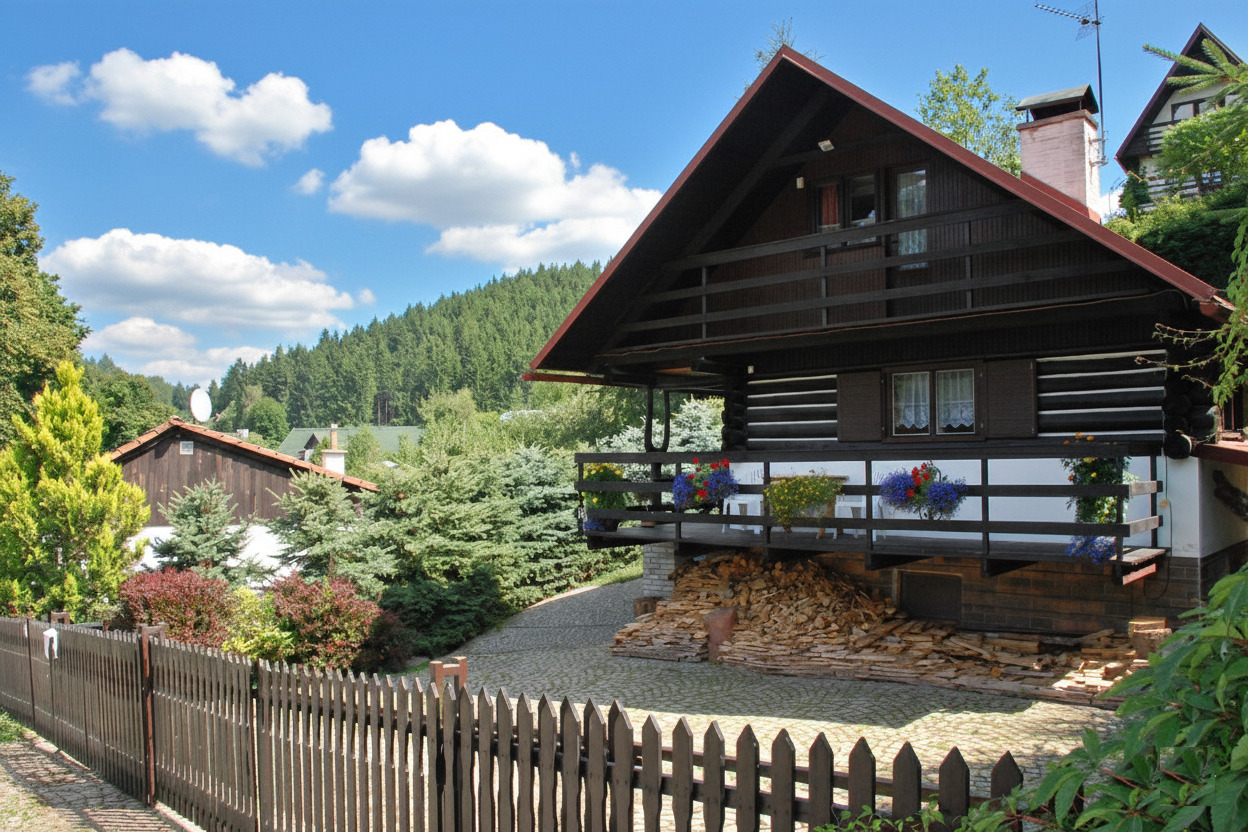 Atraktivní stylová chata v rekreační oblasti u rekreačního rybníka Dolce, 5 km od aquaparku v Trutnově v Podkrkonoší.