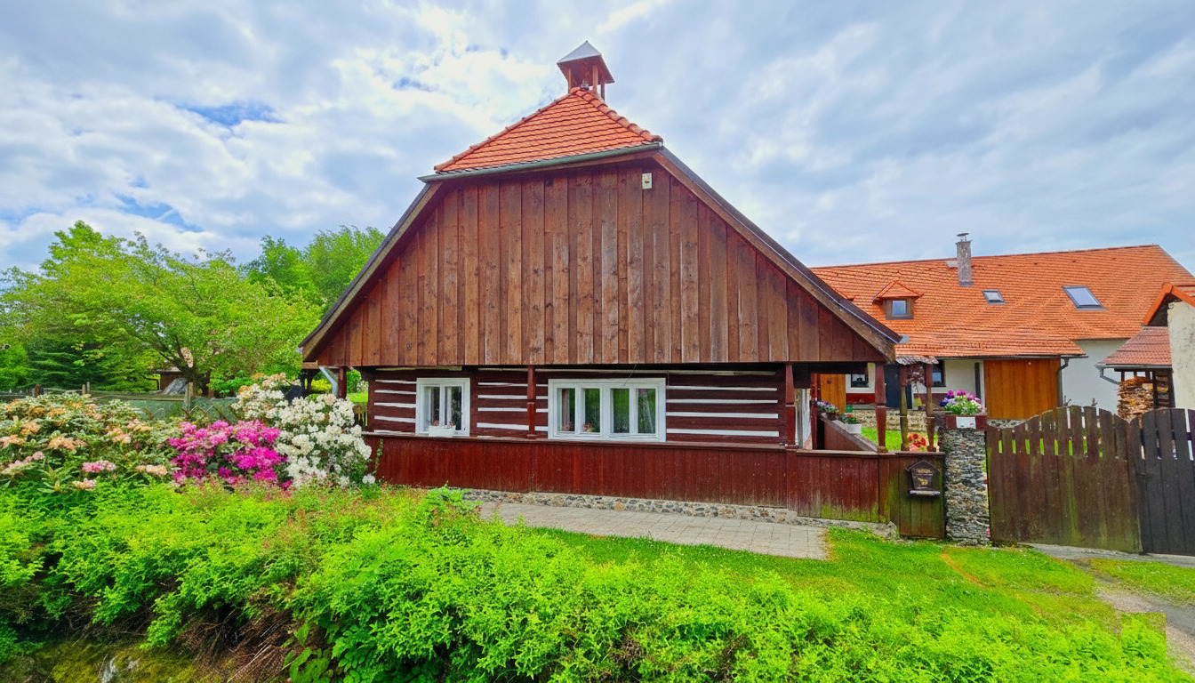 Stylová roubená chalupa v klidné části malé obce Vísky, 12 km od aquaparku Rokycany a 30 km od Plzně v západních Čechách.