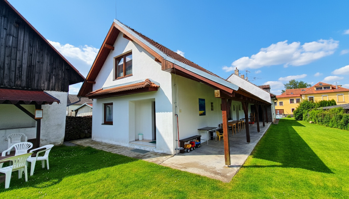 Zděná chalupa s venkovním zapuštěným bazénem a s dětským bazénem, 6 km od Bechyně v jižních Čechách.